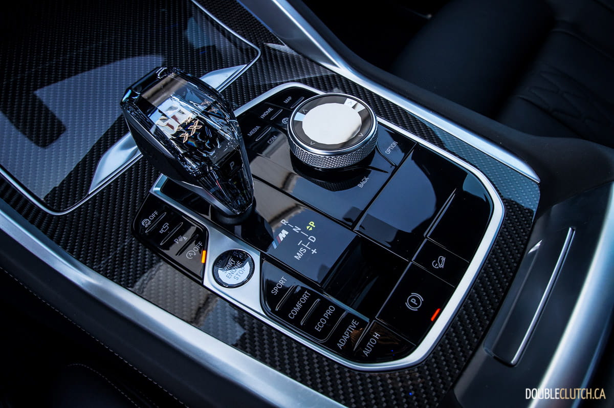 Options on the test vehicle include the $17,000(!) Premium Excellence Package, which adds amenities such as Comfort Access keyless entry, soft close doors, a Sky Lounge panoramic sunroof (with configurable LED accent lighting in the glass), side sunshades, heated and cooled cup holders, four-zone automatic climate control, massage front seats for both driver and passenger, laser headlights, head-up display, Harman Kardon audio, and an Alcantara roof liner. Add another $2,000 for full Merino leather, $1,000 for carbon fibre trim, and $500 for an illuminated kidney (massive) grille that’s both aspirational and pretentious, all in the same sentence. Bottom line? $112,500.