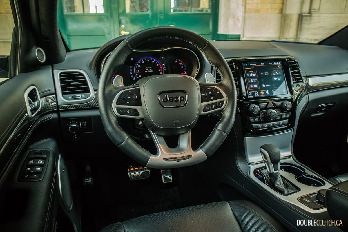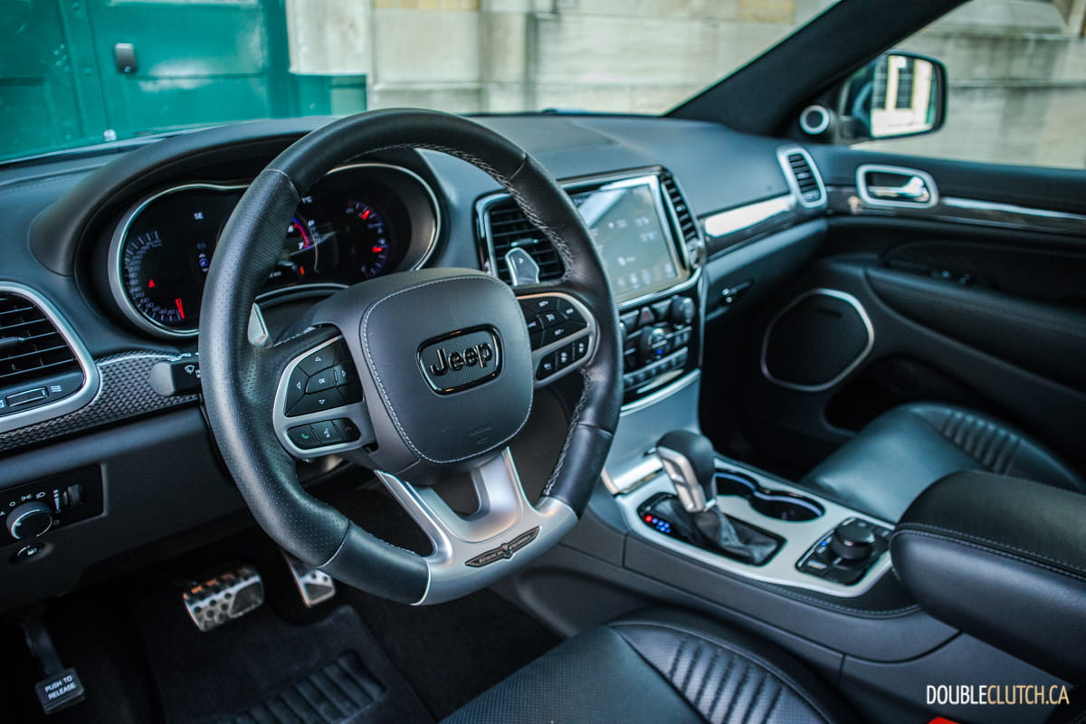 An eight speed automatic handles the power extremely well with lightning quick, yet firm shifts, also accessible through the steering wheel mounted paddles. Power flows through Jeep’s Quadra-Trac SRT Active On Demand 4×4 system. With 707 horsepower at your disposal the system works hard, even on dry roads, to keep the big Jeep going exactly where it’s pointed.