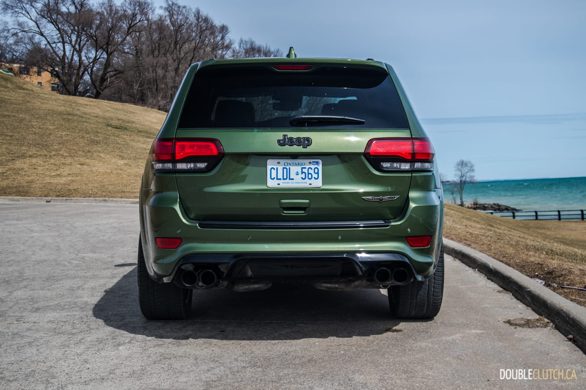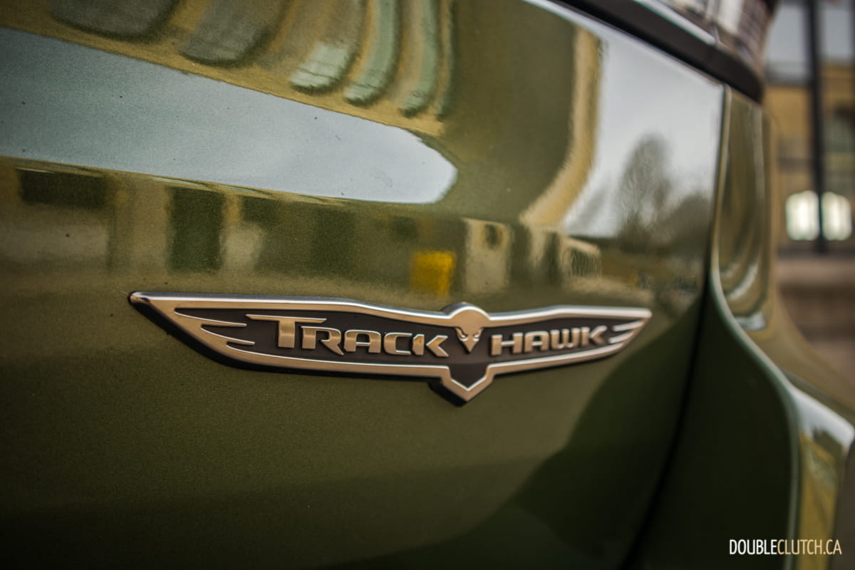 The Trackhawk delivers mind numbing acceleration and a soundtrack that will make most muscle cars sound tame, while still able to haul the family and family boat to the cottage on weekends. This is a formula I can get behind. There are a lot of fourth generation Grand Cherokees on the road, especially since we’re nine years into this generation, however if you’re paying attention the Trackhawk is an immediate standout. It shares its aggressive looking front and rear fascia with the less powerful (475 horsepower) Grand Cherokee SRT (reviewed here), but sits lower hunkered down on wide 20-inch wheels wrapped in 295/45/R20 high performance rubber.