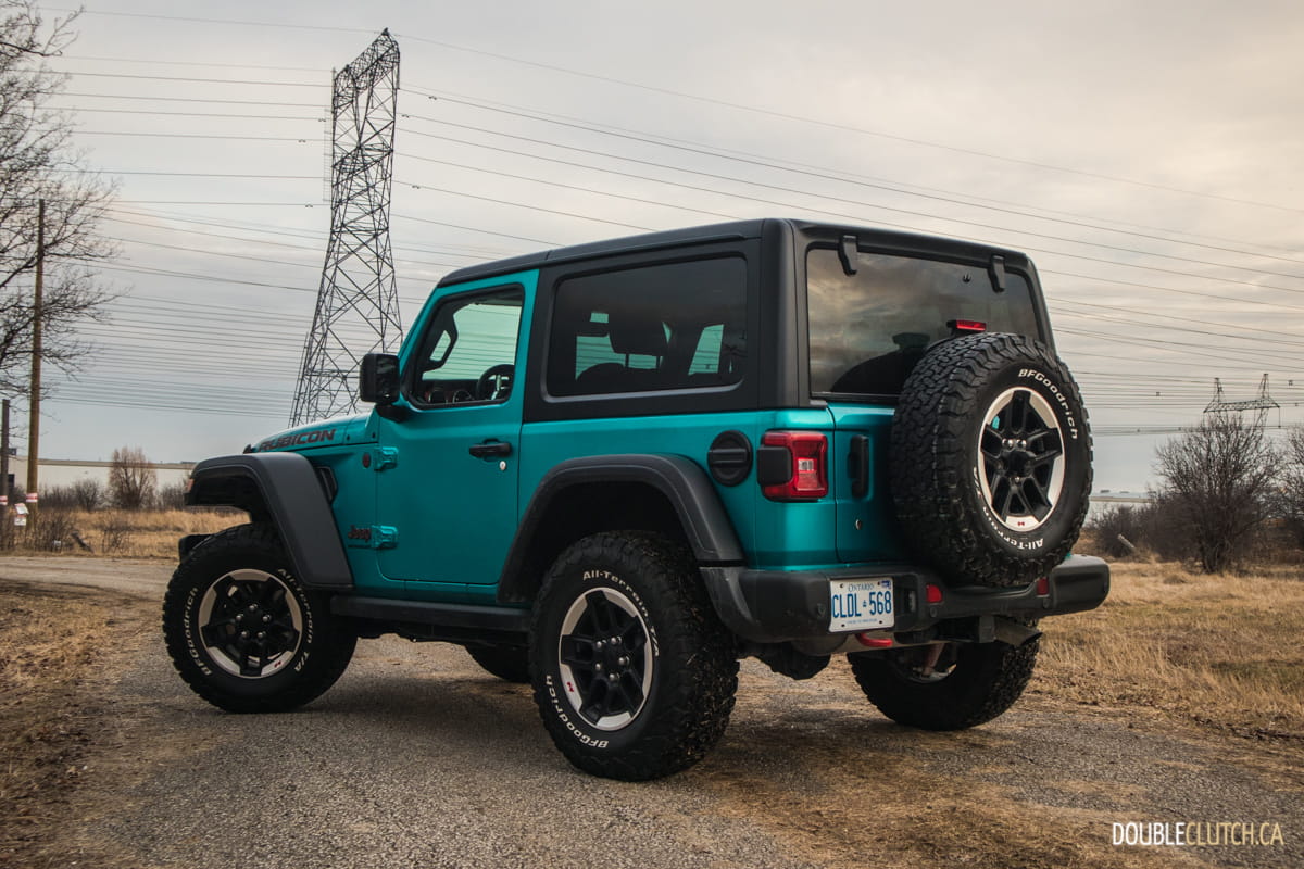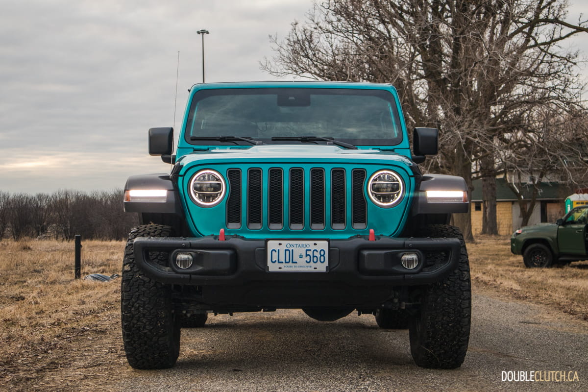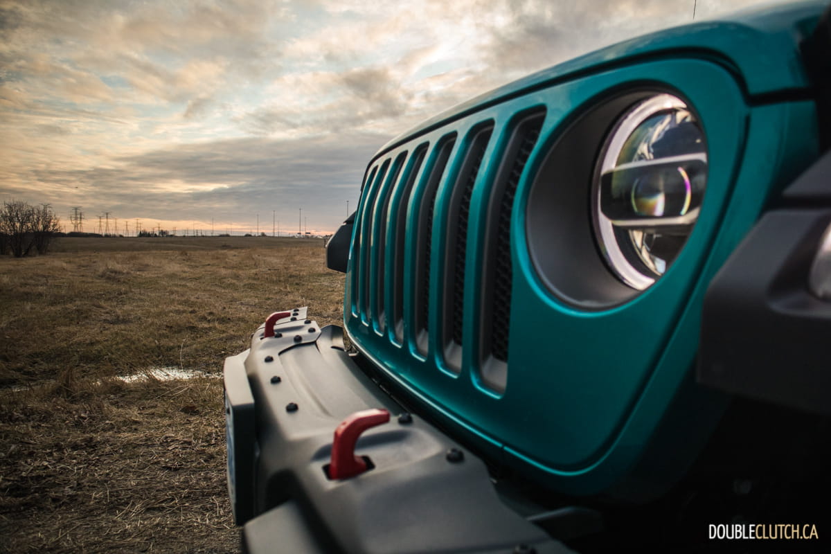This is the 2020 Jeep Wrangler Rubicon 4×4, borrowed for an in-depth look. Fiat-Chrysler Automobiles had achieved the impossible when designing the fourth generation “JL” Wrangler – it remained instantly recognizable while looking refreshed and more modern. The optional LED lighting system looks great on the JL Wrangler’s simple exterior design, and the optional 17-inch wheels suit the sporty look of the Rubicon trim very well. We have to commend FCA designers for offering us an excellent array of colours to choose from, with cool names to match such as HellaYella, Punk’n Metallic, Sting Gray, and the awesome paint scheme worn by our tester, Bikini Pearl.