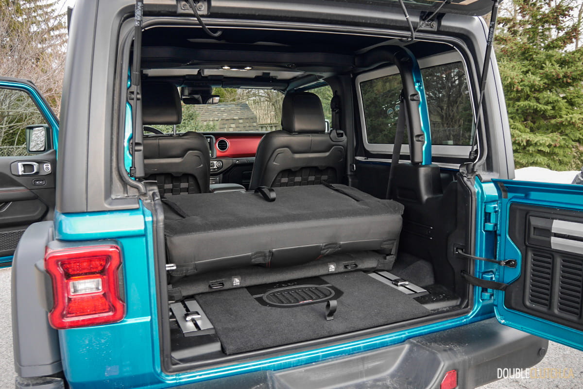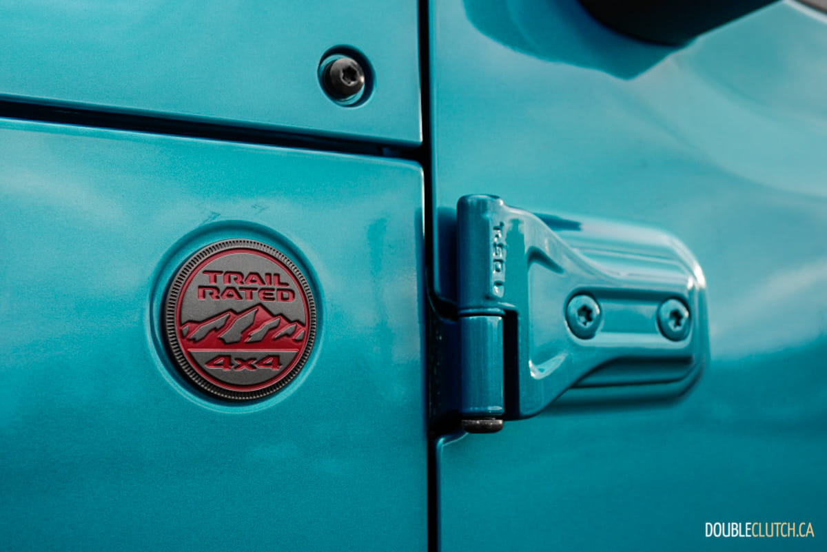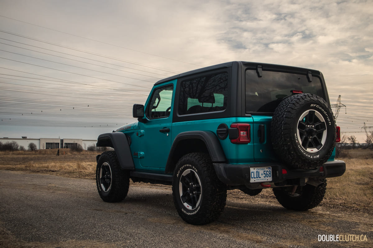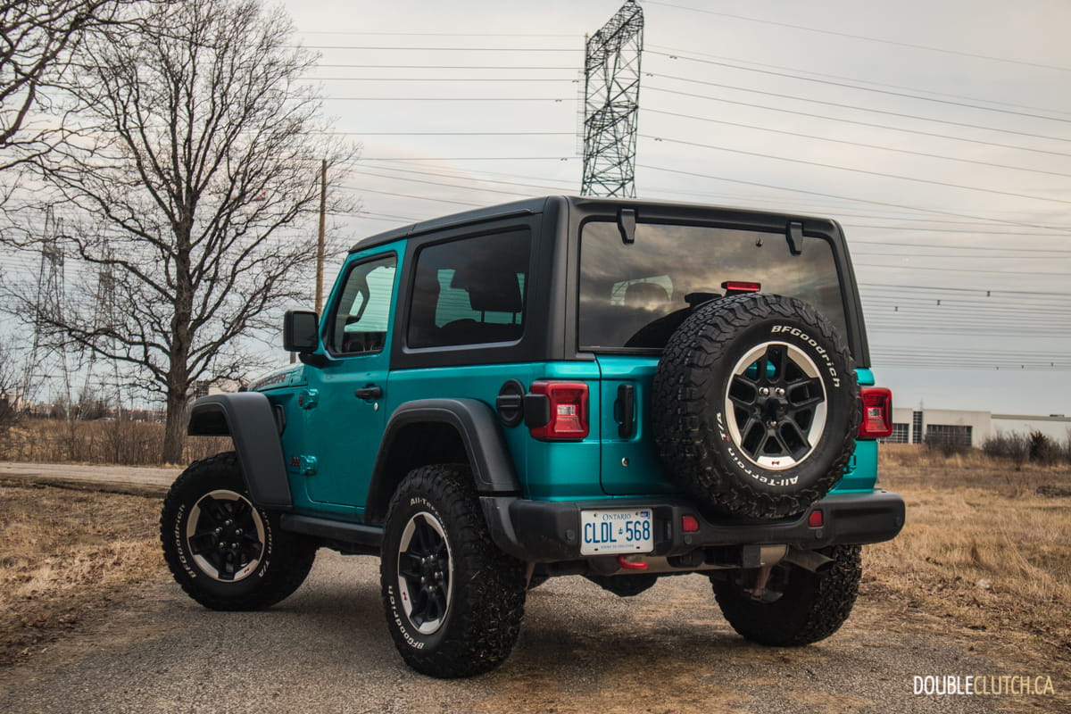 This is the 2020 Jeep Wrangler Rubicon 4×4, borrowed for an in-depth look. Fiat-Chrysler Automobiles had achieved the impossible when designing the fourth generation “JL” Wrangler – it remained instantly recognizable while looking refreshed and more modern. The optional LED lighting system looks great on the JL Wrangler’s simple exterior design, and the optional 17-inch wheels suit the sporty look of the Rubicon trim very well. We have to commend FCA designers for offering us an excellent array of colours to choose from, with cool names to match such as HellaYella, Punk’n Metallic, Sting Gray, and the awesome paint scheme worn by our tester, Bikini Pearl.