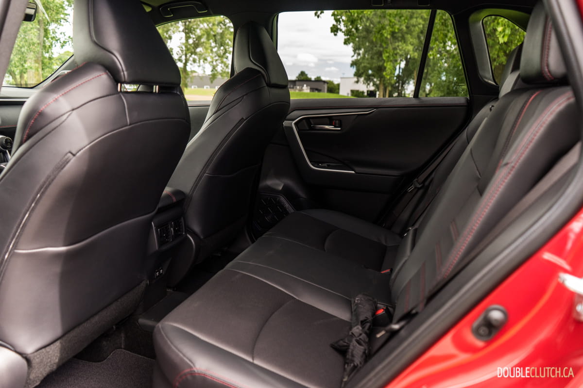 While the majority of the RAV4 Prime’s interior is fairly typical for Toyota’s current lineup, there are some touches unique to this model. The Prime’s theme is red, so highlights and stitching throughout the cabin is done in red. Interior space is generous with ample headroom for taller drivers as well as rear legroom, though it’s not as cavernous or quite as cleverly packaged as Honda’s CR-V. The 949-liter cargo capacity behind the rear seats is only marginally worse than the regular RAV4 Hybrid, and this is due to fitment of the plug-in hybrid components. Once the rear seats are folded down, this number grows to 1,790 liters.