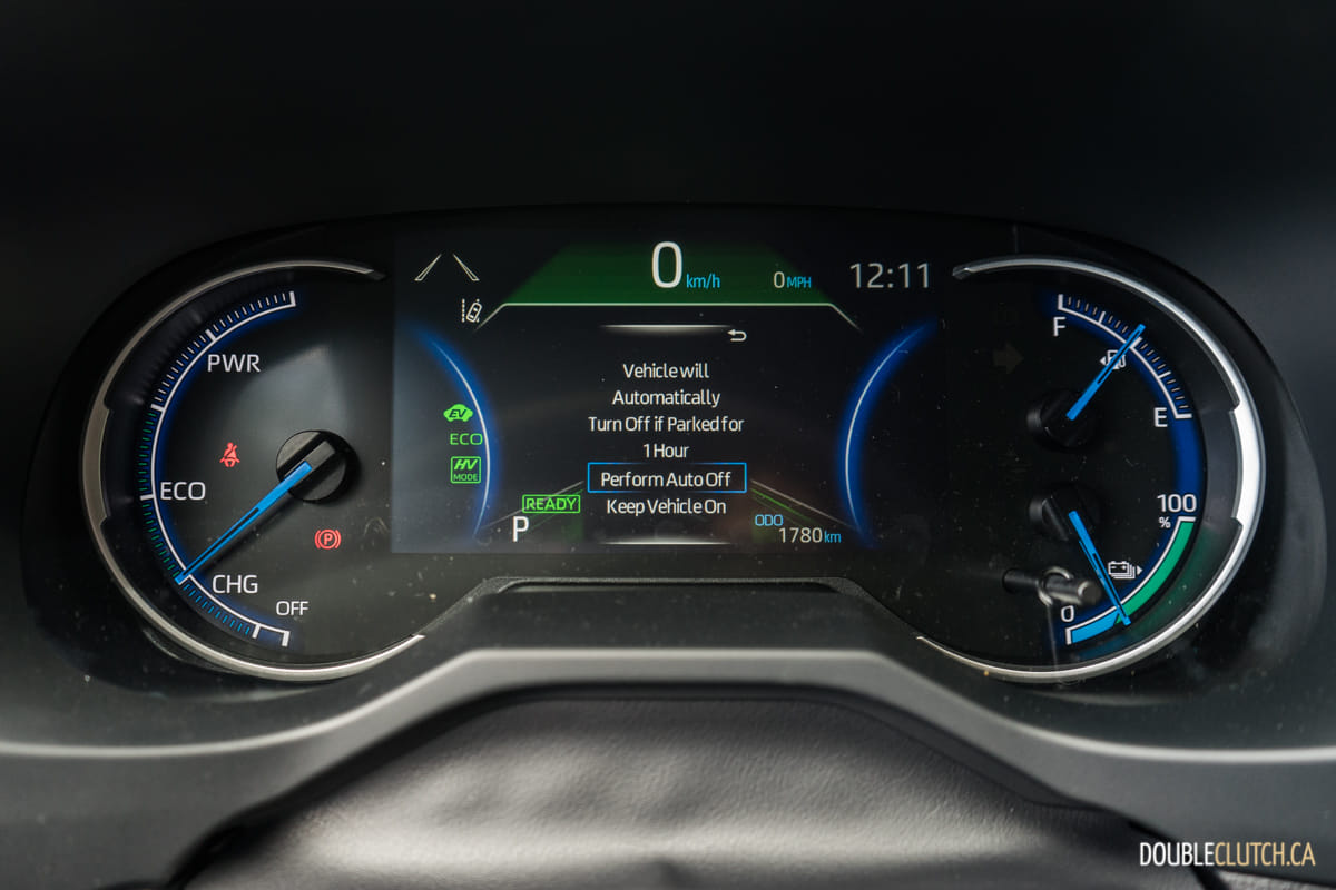 As far as fuel efficiency is concerned, your mileage may vary depending on driving style and actual electric range usage. Despite the 68-km rating, we observed a total of 73 kilometers of EV range without any real effort to conserve it. Once this was depleted, the RAV4 functions like a typical hybrid, and we observed 5.7L/100km in combined driving, with about 100km of straight highway usage as well. Naturally, regular 87-octane fuel is all the RAV4 requires in its 55-liter tank. Those wanting to tow with their Prime can haul up to 2,500 pounds of cargo.