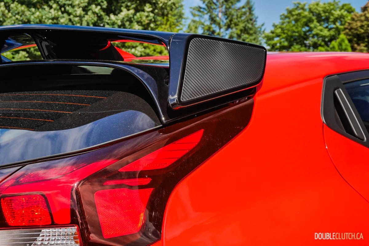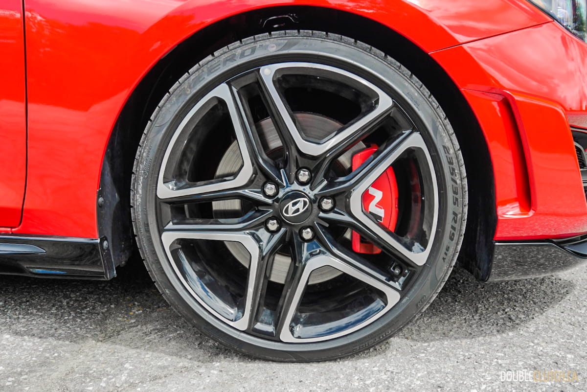 The Veloster N is styled with classic hatchback proportions. We love the raked roofline creating a fastback look, and the styling is not overdone to avoid looking too boy-racer on the street. There are four colours to chose from, and even though the Performance Blue colour is the most representative of the N brand, the “Ignite Flame” paint job on our tester is just as eye catching. Hyundai paid extra attention to the details and painted the sporty red trim accents on the exterior dark grey, something we would have liked to see on any red Nissan 370Z NISMO (reviewed here).