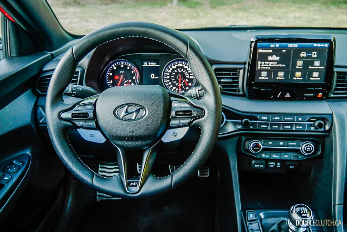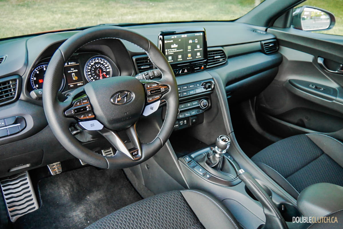 Fuel economy is rated at 10.6L/100km in the city, 8.3L/100km on the highway, for a combined average of 9.5L/100km. We observed an average of 10L/100km during our week of city-heavy commute, a fair achievement given the liberal enjoyment with the throttle all week. As expected with any high-output turbocharged engine, 91-octane premium grade gasoline is required and the Veloster N has a 50-litre fuel tank capacity.