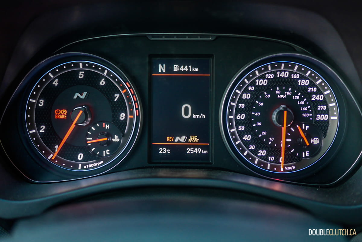 An eight-inch touchscreen controls the infotainment, which is straight forward and easy to use. Touch commands are responsive, and the screen resolution is on-par with its competition. There is Apple CarPlay and Android Auto support for those who prefer to be connected. A special feature for the Veloster N is the dedicated instrument cluster with a variable redline feature that limits how much drivers can push the car before it is properly warmed up, and a shift light that reminds the driver as it gets near that redline.