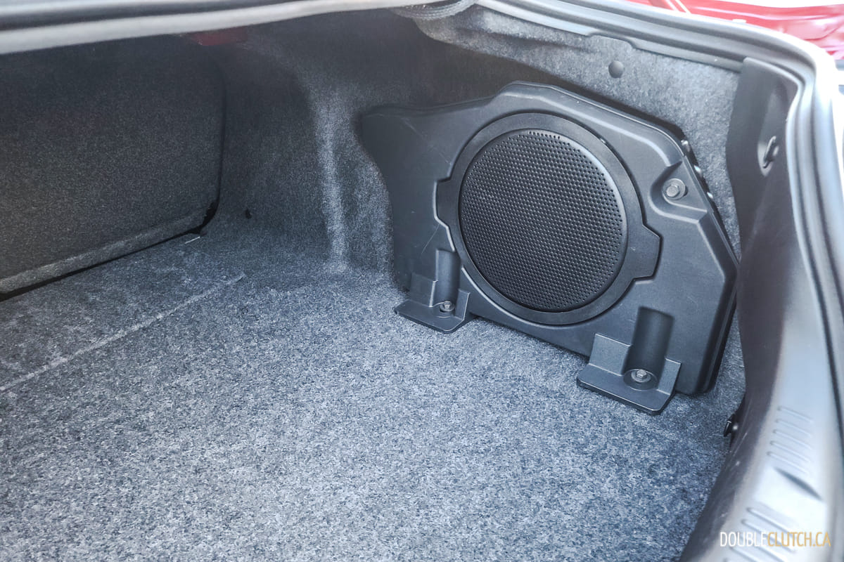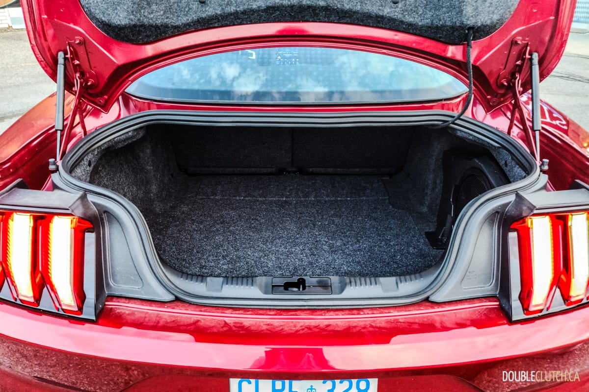 The Mustang’s interior is much smaller than the exterior would lead you to believe and the gauges, buttons and toggle switches haven’t changed since this generation debuted half a decade ago. Soft touch materials are located on frequent touch points and look average at best – the same goes for the leather used on the seats, steering wheel and shifter. The seats are comfortable and those with larger frames will feel right at home. The rear seats are basically useless when taller occupants are up front; there was about an inch of legroom behind my driving position. Trunk capacity comes in at 382-liters, which is more than a Camaro but falls behind the Dodge Challenger (reviewed here).