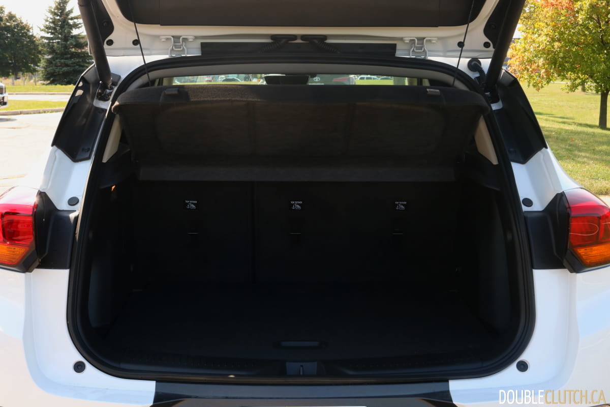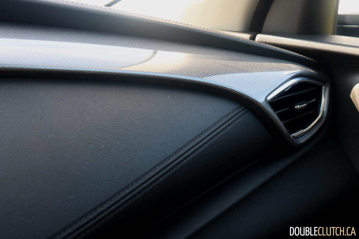 On the inside of the Encore GX, things improve a bit. The fold-flat front passenger seat is an incredibly nice touch that allows long items to be easily carried inside the vehicle. The array of available tech is impressive, from a heads-up display to a panoramic moonroof. Passenger space is quite sufficient and the rear seat is comfortable and well-padded. The front seats are a slightly different story, with oddly-contoured backrests that are prone to digging into the driver’s shoulder blades. The attempts to ‘stitch’ fairly mediocre plastics on the dashboard feel cynically insincere, especially considering material quality elsewhere fails to make up for it.