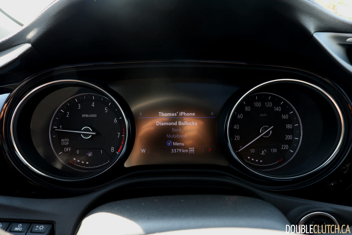 While steering weight builds nicely mid-corner, ride quality is a little more than a decade out of date with noticeable choppiness over minor imperfections over anything larger than the cross-section of a nickel. Head-toss is pronounced and mid-corner freeway expansion joints are met with a spooky combination of pitch and roll. General road noise is also surprisingly pronounced for a Buick, necessitating cranking the aforementioned entirely inadequate stereo to cover up the ruckus. Our testing period consisted of mostly freeway driving and we observed 9.0L/100km, 0.5 L/100km worse than the official combined rating.