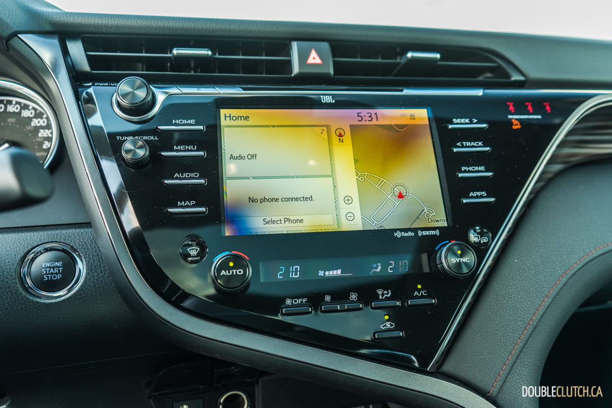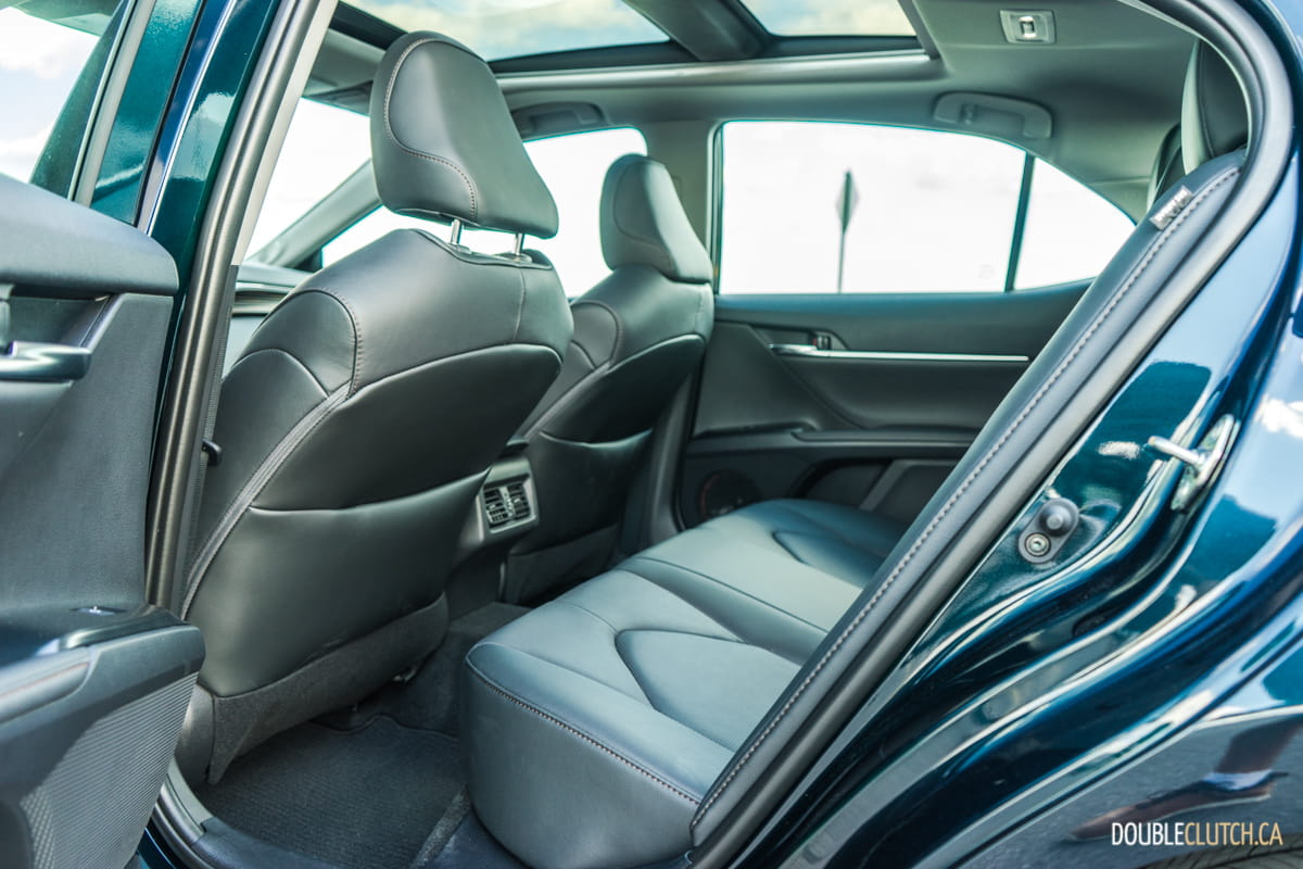 The Camry’s ergonomics are excellent as expected from any Toyota product, with the exception of the seats that feel flat with no lateral support. Luckily the eight-way power adjustable seats have a wide range of adjustments to get you into a comfortable position. Armrests are in the perfect spots with excellent padding and leather trimming. Signature to all Camrys is excellent front and rear cabin space. The large panoramic sun roof and supple leather seating comes together for a spacious and welcoming cabin. All around, the cabin is good, but lacks the Lexus vibes that the exterior suggest.