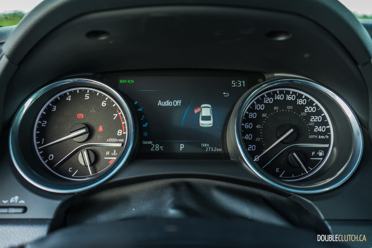 The AWD models are unfortunately limited to the four-cylinder engine only. Our tester is powered by Toyota’s 2.5-liter inline four-cylinder engines. This engine has Toyota’s tried and true VVT-I valvetrain on both intake and exhaust cams paired with direct injection for a healthy 202 horsepower and is mated to an eight-speed automatic transmission. The powertrain unfortunately takes away from the Camry’s refined nature. The engine is constantly put through its paces carrying the 4473-pound car. The responsive transmission is quick to downshift keeping revs at the sweet spot, but unfortunately this also leads to some abrupt downshifts.