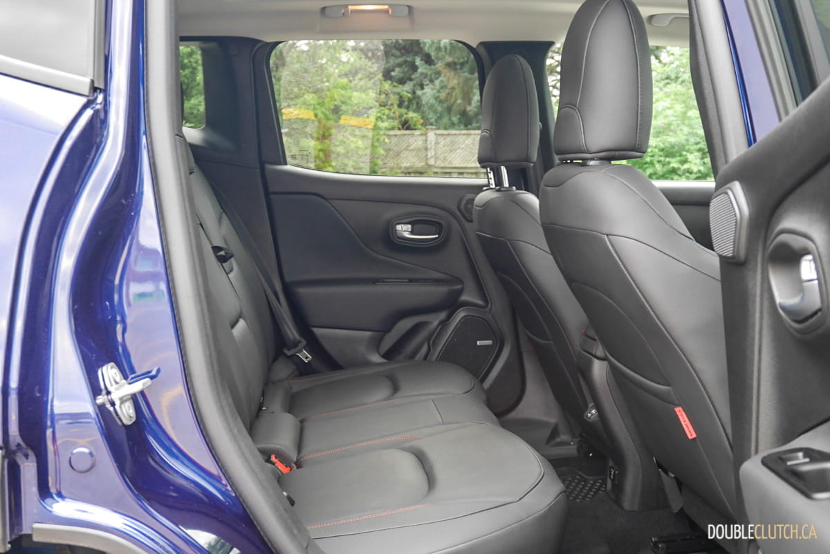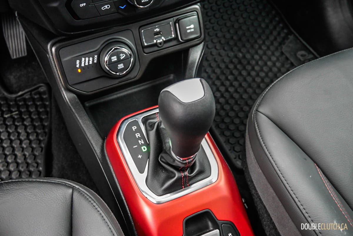 The ruggedness of the Renegade’s exterior carries over to the interior design, where we observe a utilitarian design that prioritizes function over form. The materials are easy to clean, buttons are oversized to allow for use with gloves, and there are many well thought out storage spaces to maximize practicality. We particularly liked the smartphone holder next to the cupholders; too often we find ourselves not having a dedicated spot for our phones and they end up in a cupholder by default. The Trailhawk model comes with a special two-tone Ruby Red with Black interior, brightening the cabin and giving it even more sportiness.
