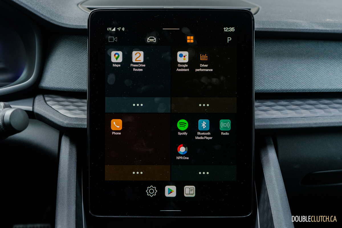 A large portrait-oriented touchscreen flanks the console area and houses the latest version of Android Automotive OS, which is Google-based and has a series of Google apps built in. Apple CarPlay is not available, though is rumoured to be very shortly. This system is fairly easy to use if you’re an Android user, and offers over-the-air updates for everything pertaining to the car.