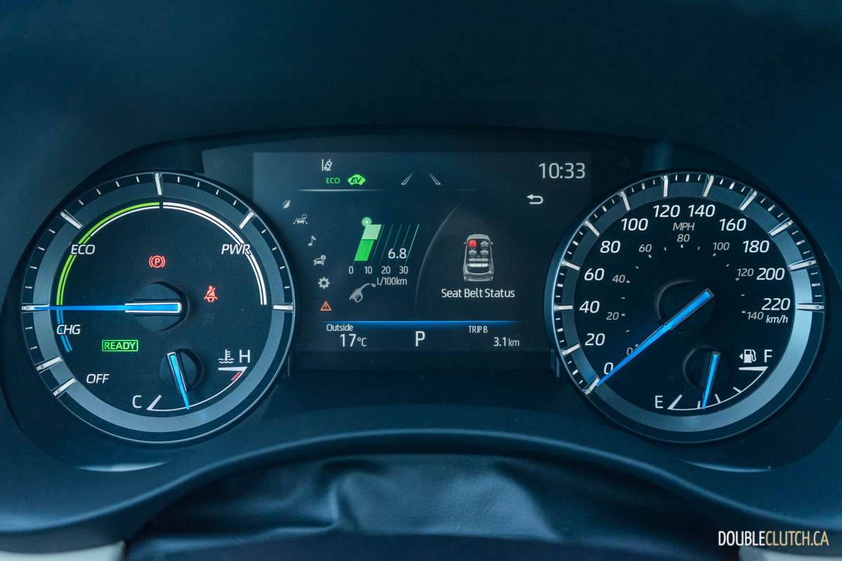 Combined fuel efficiency for the Highlander Hybrid sits at 6.7L/100km, which surpasses all gasoline competitors by a considerable amount. We observed numbers right in this range, seeing 6.8L/100km after a 600-kilometer test. The 65-liter gas tank happily accepts regular fuel, and results in a cruising range of nearly 1,000 kilometers before the need to refuel. In comparison, the gasoline Highlander is rated at nearly 11L/100km combined.