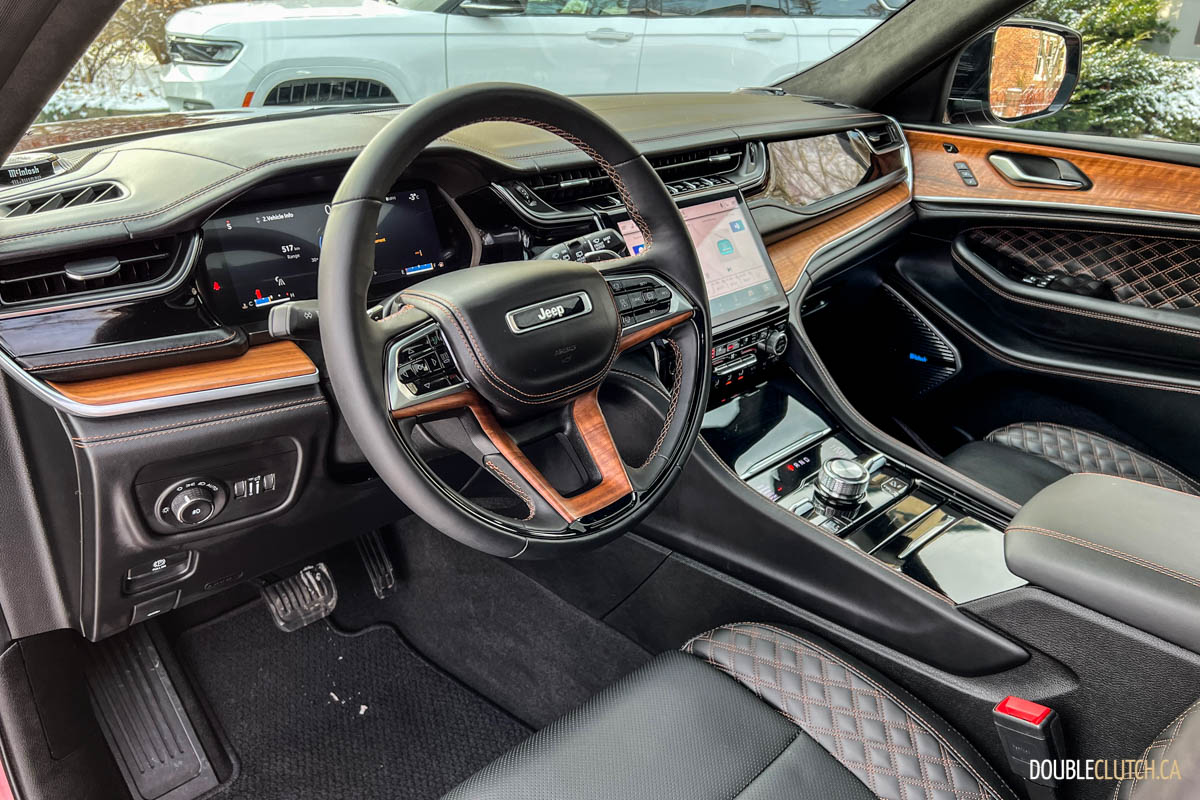 The cabin of the Grand Cherokee has been completely reworked, with stunning materials, open-pore woods, and luscious leather offerings (with optional quilted Palermo leather). Uconnect 5 infotainment is on board with an 8.4-inch touchscreen on lower trim models, and an optional 10.1-inch unit. There’s also an available 10.25-inch screen in front of the front passenger which can display Amazon Fire TV. We like the physical buttons to access frequently used functions, an obvious touch that many manufacturers have omitted in favour of minimalistic design
