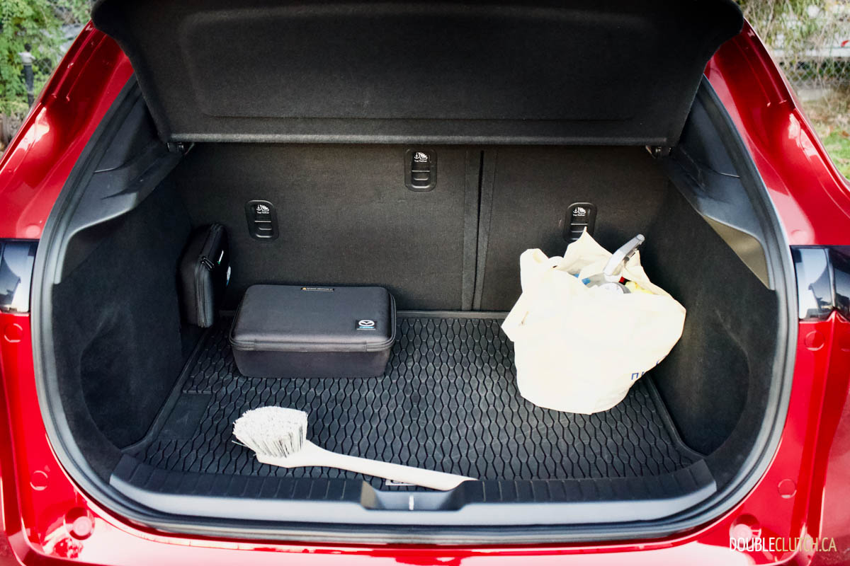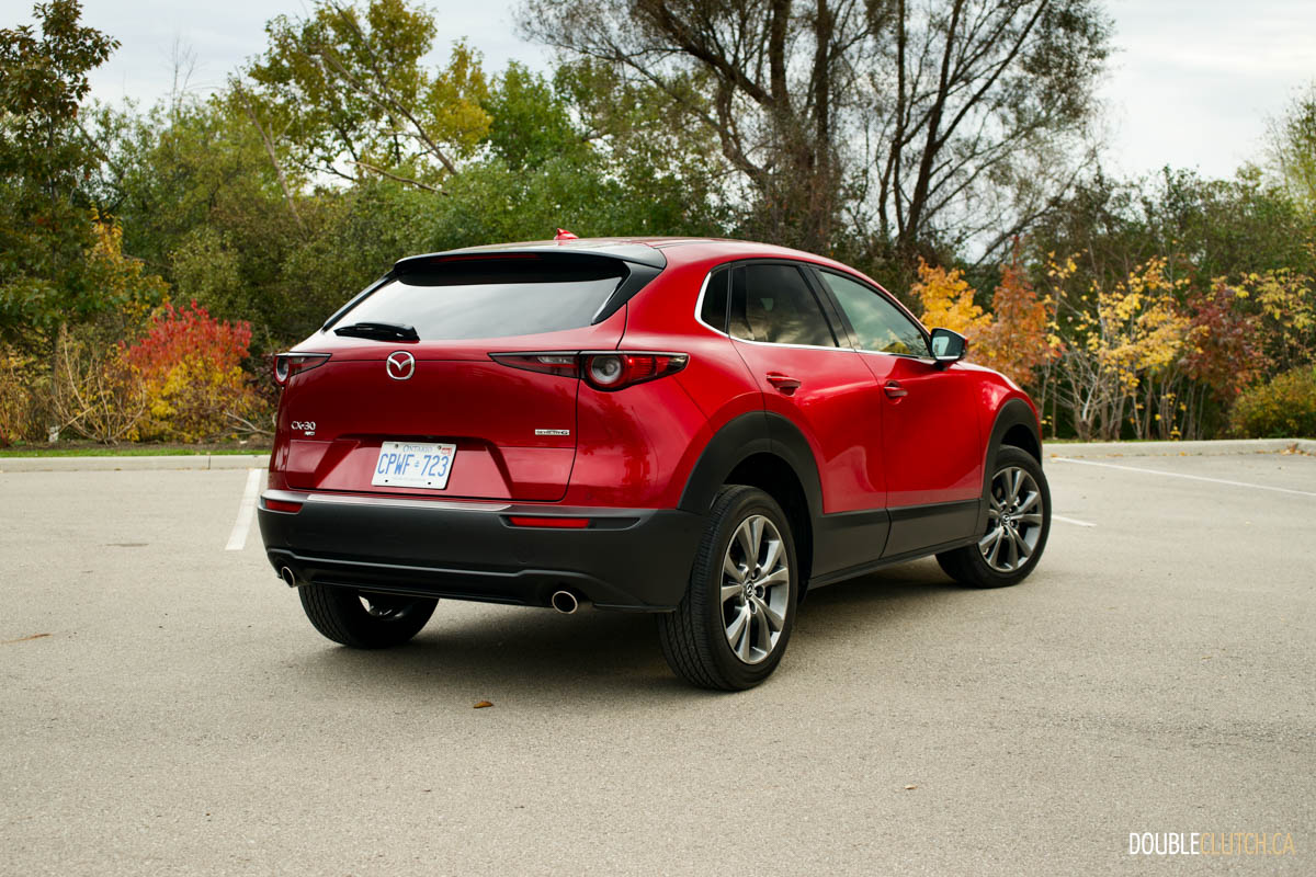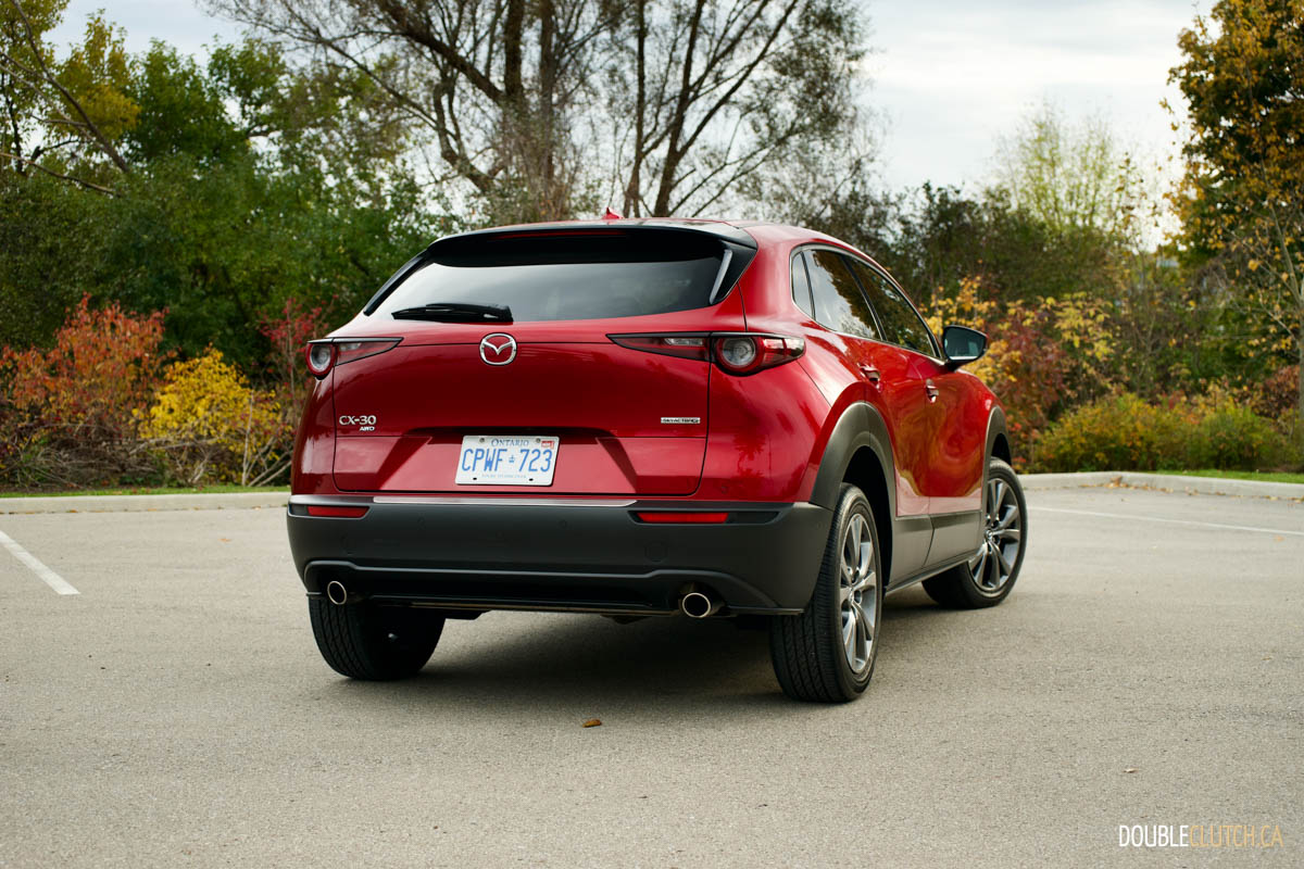 Mazda has the CX-30 rated at 9.9L/100km in the city and 7.7L/100km on the highway. I was able to get a solid 8.4 L/100km during the week in an even mix of city and highway travel. The fuel capacity on our CX-30 GT AWD is 48 litres versus 51 litres on front-wheel-drive models. While turbocharged models run optimally on premium fuel, this GT model runs just fine on 87-octane regular.