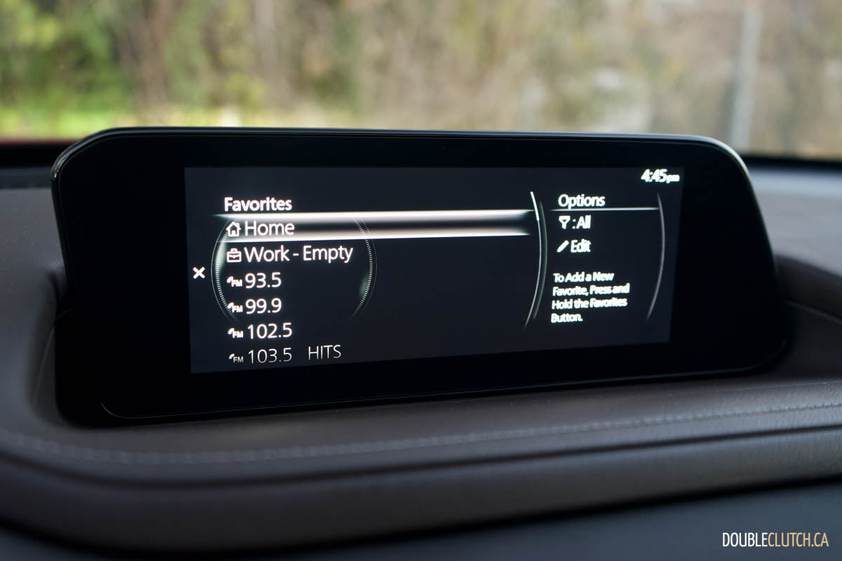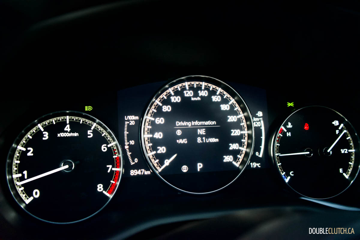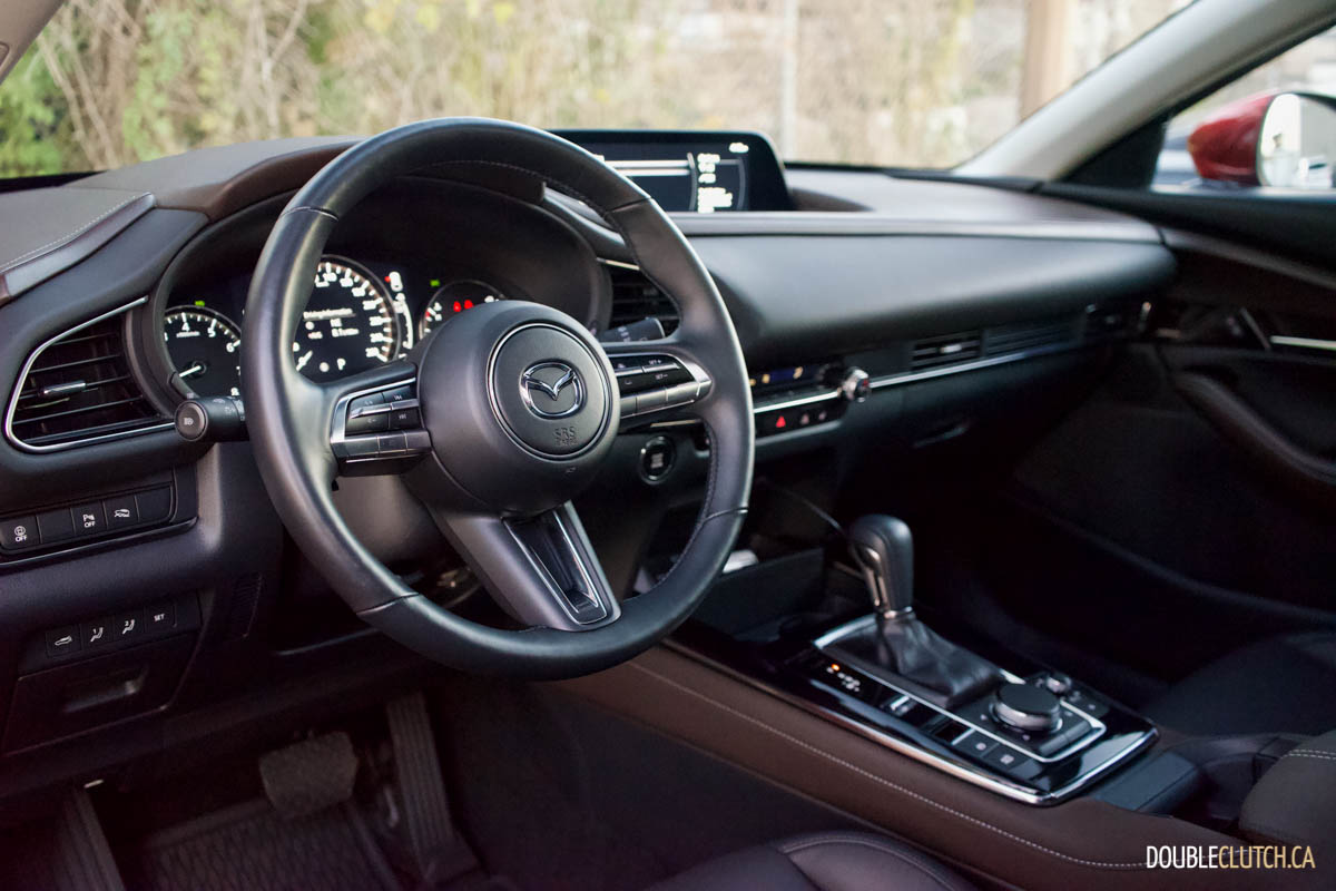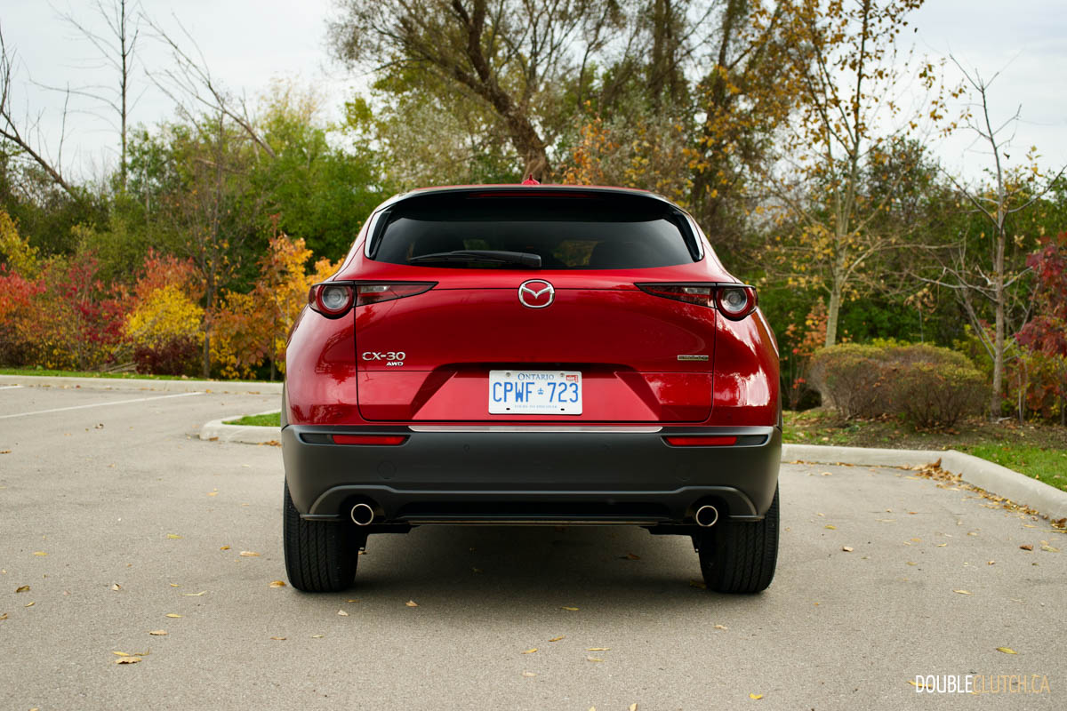 Mazda has the CX-30 rated at 9.9L/100km in the city and 7.7L/100km on the highway. I was able to get a solid 8.4 L/100km during the week in an even mix of city and highway travel. The fuel capacity on our CX-30 GT AWD is 48 litres versus 51 litres on front-wheel-drive models. While turbocharged models run optimally on premium fuel, this GT model runs just fine on 87-octane regular.