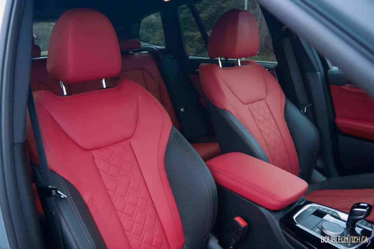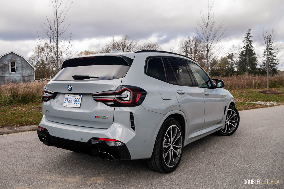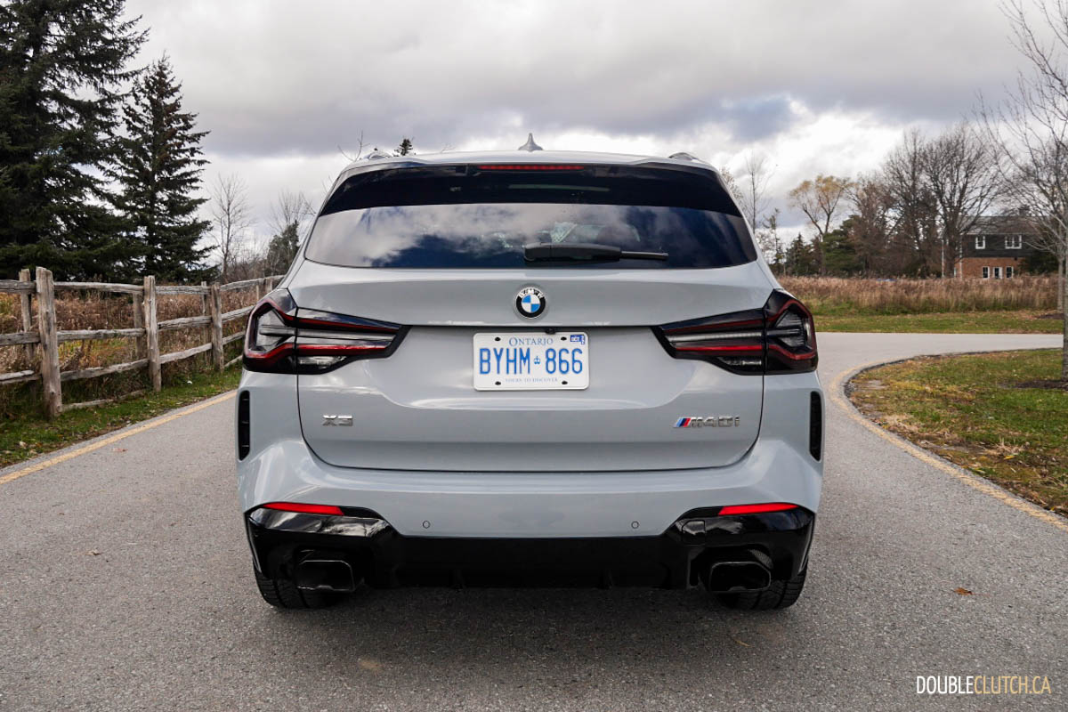 Fuel consumption is rated at 11.2L/100km in the city and a frugal 7.6L/100km on the highway for a combined 8.9L/100km. My road test was performed on a city-heavy setting in wintry weather resulting in an 11.0L/100km consumption rating, matching my expectation. The X3 M40i requires premium 91-octane fuel for its 65-litre tank.