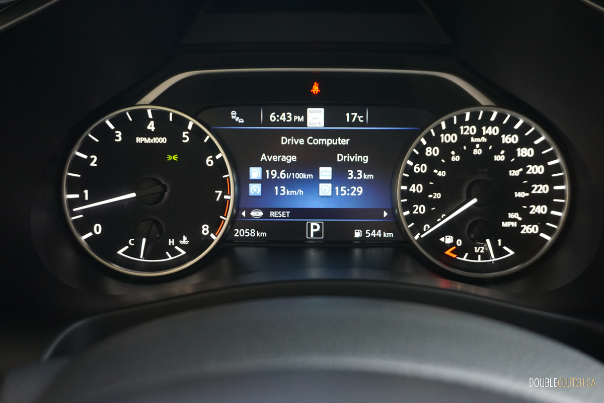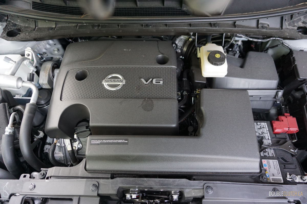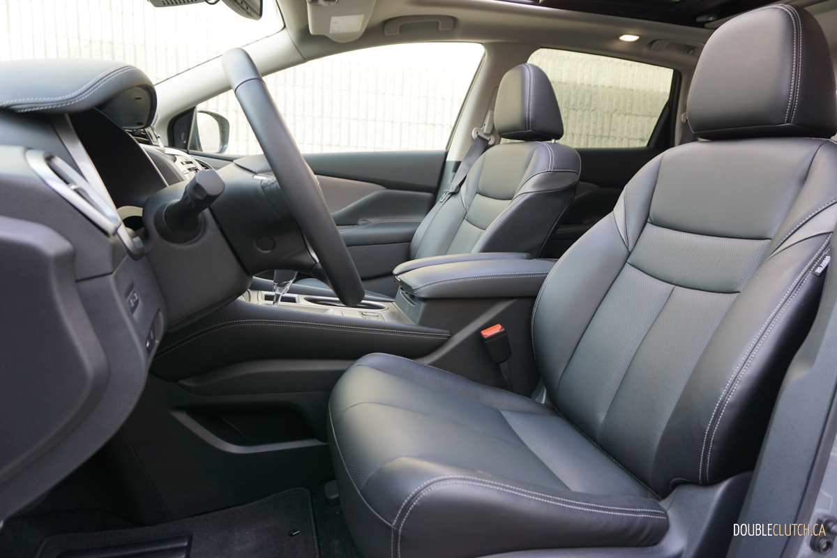 The 3.5-liter V6 engine fires to life with a pronounced growl every single time you push the start button, never wasting an opportunity to remind you of its performance pedigree. In the Murano, it produces 260hp and 240lb-ft of torque, offering brisk acceleration whenever you want it, and allows for relaxed, low rpm cruising when you don’t. That relaxed cruising allows for a highway fuel efficiency rating of 8.5L/100km, and our testing dipped down to just 8L/100km during a long jaunt. Our combined observed mileage came in at 9.8L/100km, which edges out Nissan’s claim 10.4L/100km.