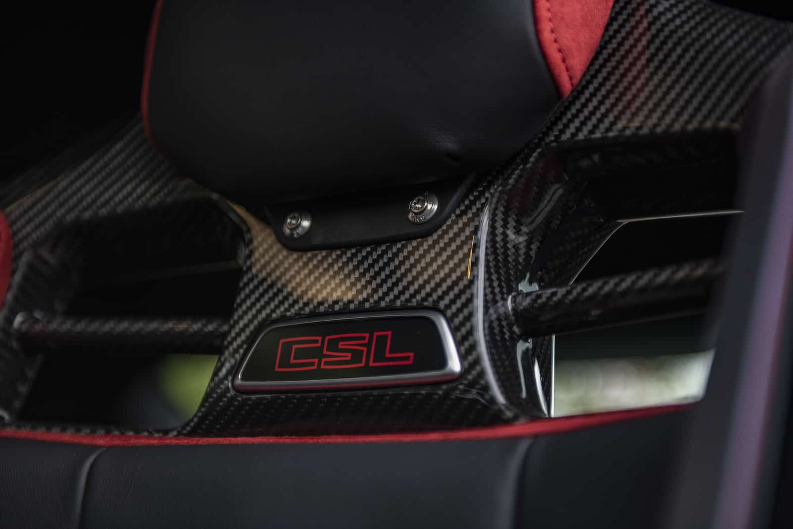 On the surface, the M4 CSL may look like a standard M4 Competition fitted with yellow daytime running lights and a fancy aero kit, but that cannot be farther from the truth. M engineers dug deep into their bag of tricks in pursuit of maximum performance – the roof panel, hood, side mirror caps, and trunk lid are made of carbon-fibre, the signature kidney front grilles have fewer slats and wider spaces between to save ounces and enhance airflow, the carbon-fibre front splitter and integrated rear ducktail spoiler are functional in generating additional downforce, and the forged M light-alloy wheels are exclusively made for the M4 CSL again with weight saving in mind. Additionally, BMW M had fitted a dedicated set of M Carbon ceramic brakes that save 31.5 pounds from the standard brakes.