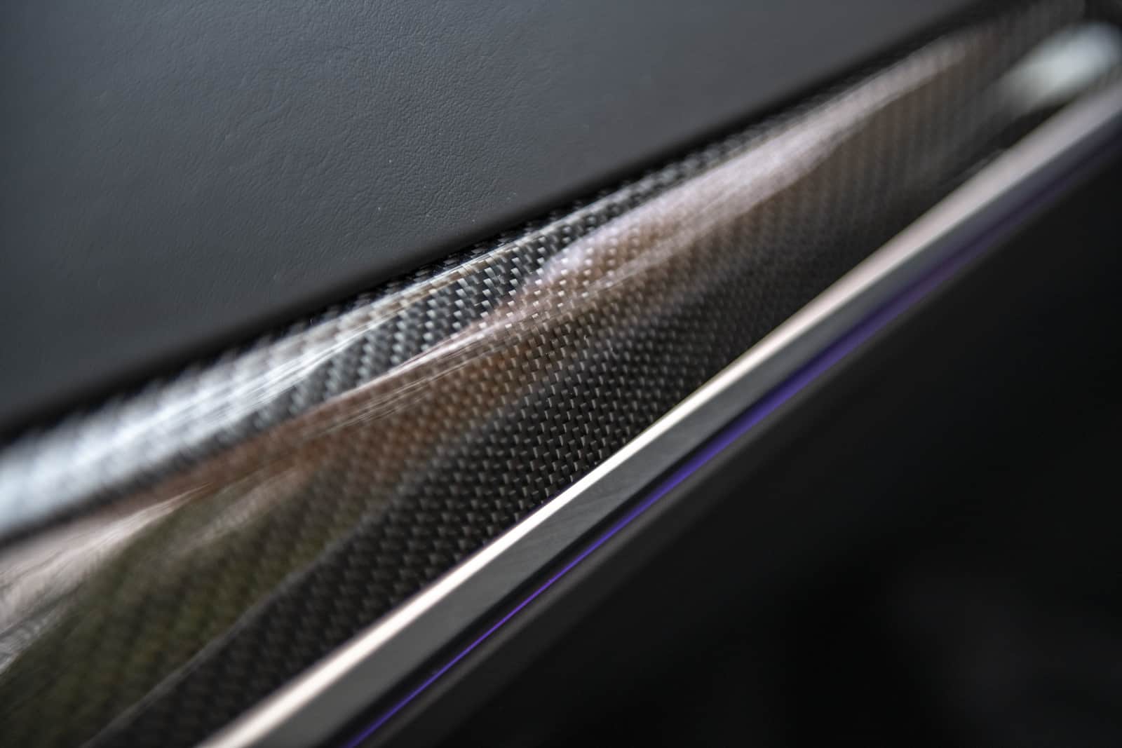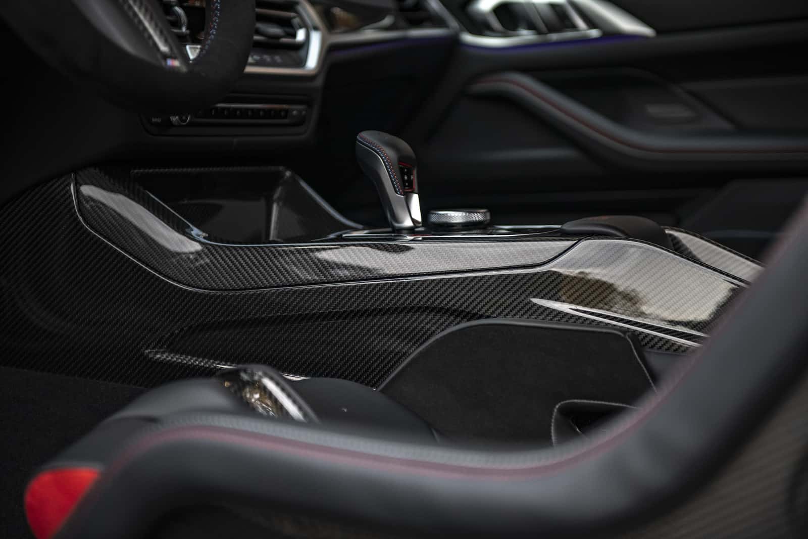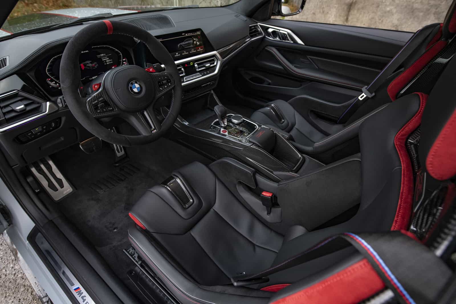 Moving on inside where we observed the extreme diet in full force; first thing you notice as soon as you open the doors is a pair of track-ready M Carbon full bucket seats that shave 53 pounds from the standard set, plus the deletion of the rear seats and seat belts that removed another 46 pounds. The use of ultra-lightweight sound insulation (read: nearly nonexistent sound deadening), thinner floor mats, and modified automatic climate control helped shed another 40 pounds or so, bringing the total curb weight to 3,640 pounds –a total of 240 pounds over a standard M4.