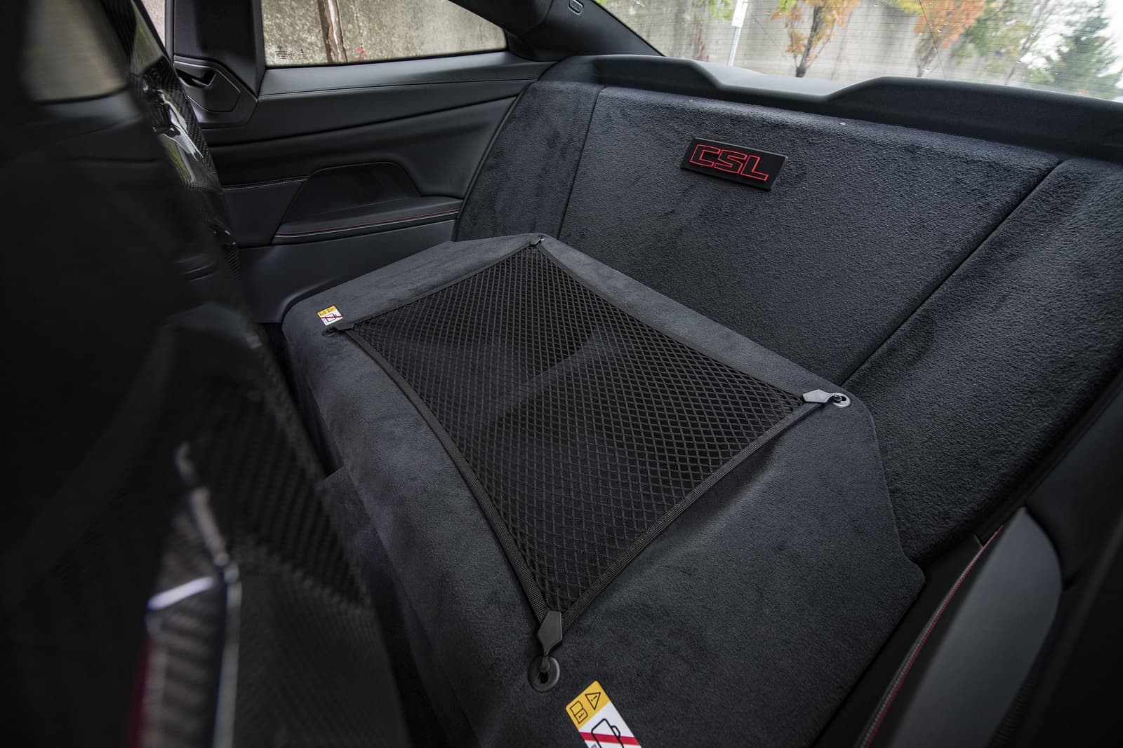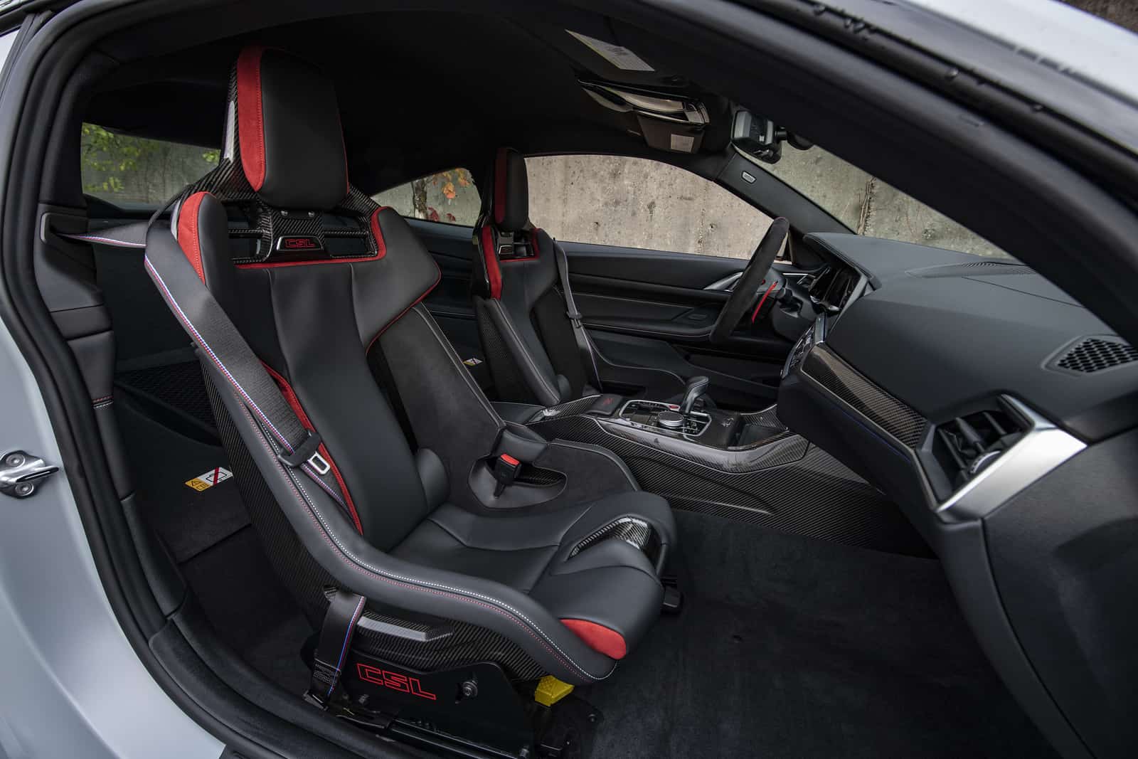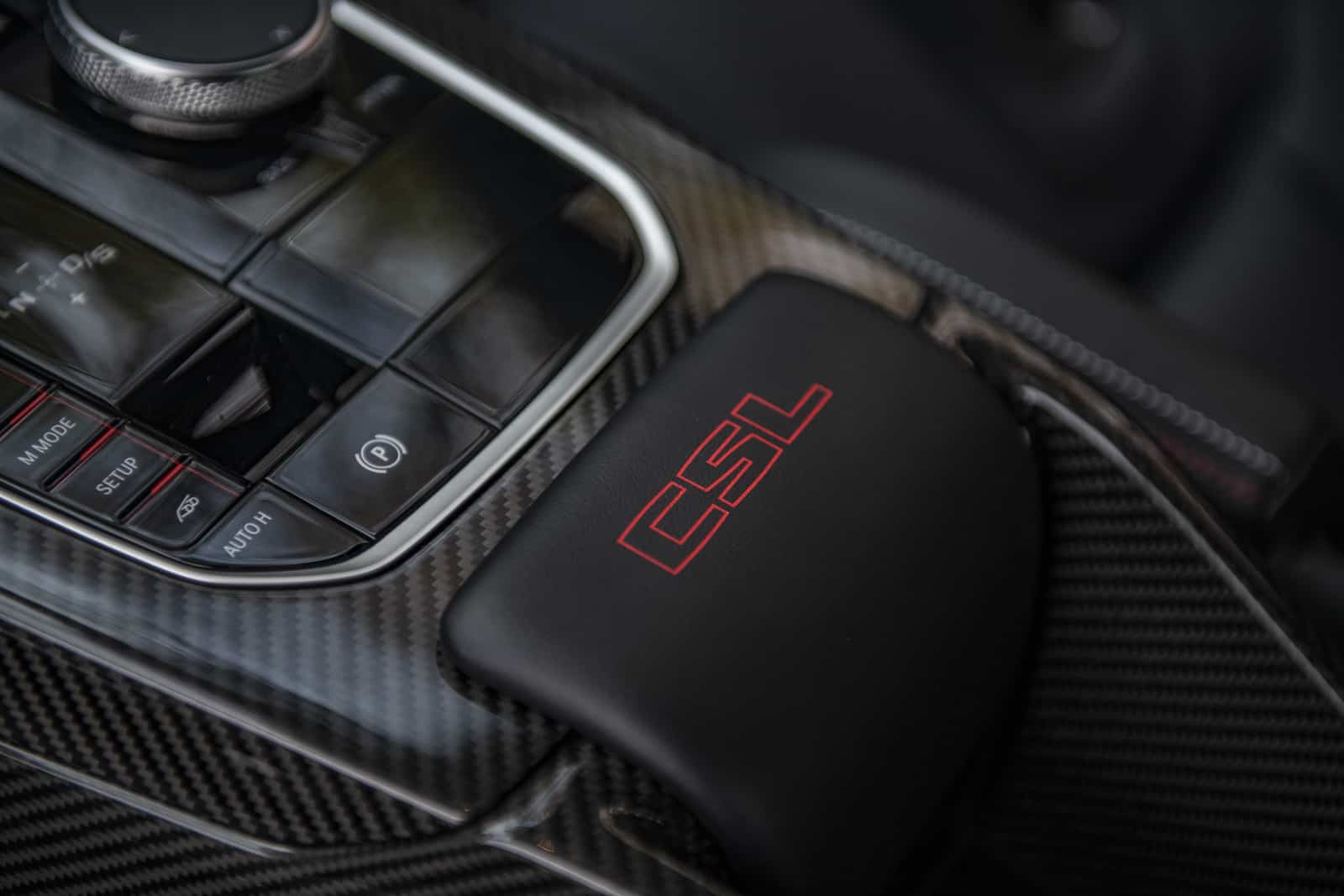 Feeling mentally ready, we wedged ourselves into the M4 CSL’s full bucket seats and grappled onto the unique M Alcantara steering wheel. First thing we noticed is just how loud this is – it is not typical BMW M-car loud, but actual race-car loud especially once it gets going. Horsepower from the modified B58 six-cylinder engine is increased to 543 – 40 more than the M4 Competition – and torque is rated at 479 lb-ft. All of that was heard and felt as soon as you lay into the gas pedal. Power delivery is instantaneous and the eight-speed M Steptronic transmission is lightning quick.