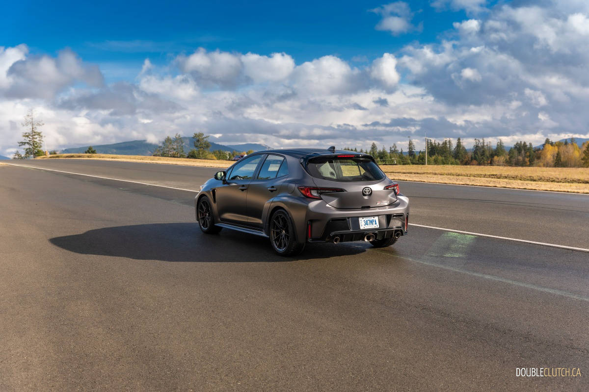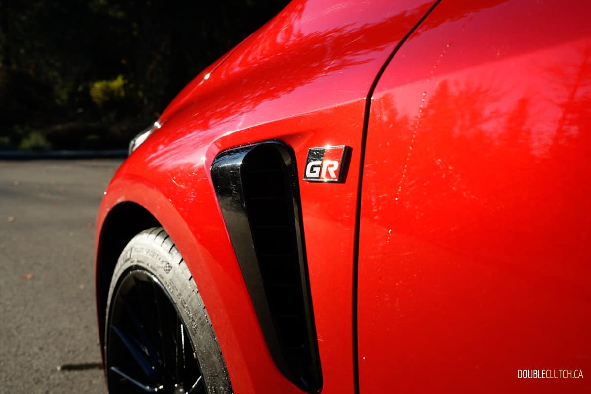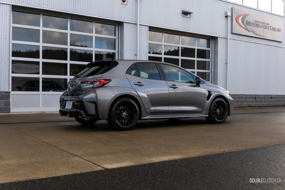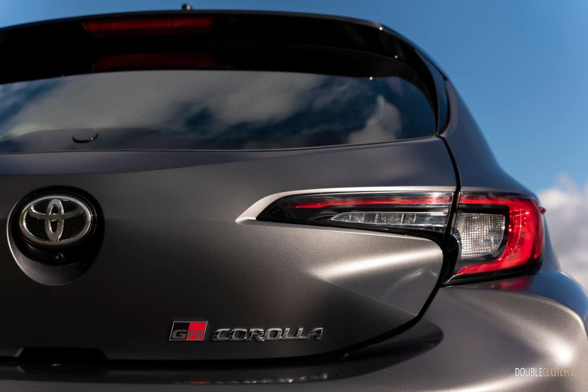 Let’s start with the styling, and there is plenty to like here. Classic long front and stubby rear end proportions? Check. Boxy fender flares? Check. Functional air vents? Lowered ride height? Racecar inspired lightweight alloy wheels? Wild exhaust tip design? Check, check, and check. And if this is all still not enough for you, Toyota will sell you a limited Circuit edition that adds hood vents, forged carbon fibre roof, and a big wing to help squash every desire to modify your GR Corolla.
