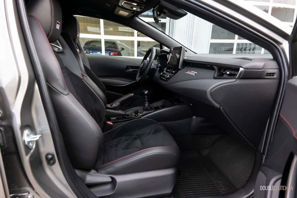 Much like many classic hot hatches, the GR Corolla’s interior resembles what a typical boy racer would do to their mother’s grocery getter – you’ll notice the aluminum pedals, bucket seats, sporty steering wheel, and a beefy spherical shift knob slapped over an otherwise pedestrian interior layout. This is not a knock against the interior design, but rather exactly what hot hatch buyers want – an unapologetic demonstration of the concept of function over form.