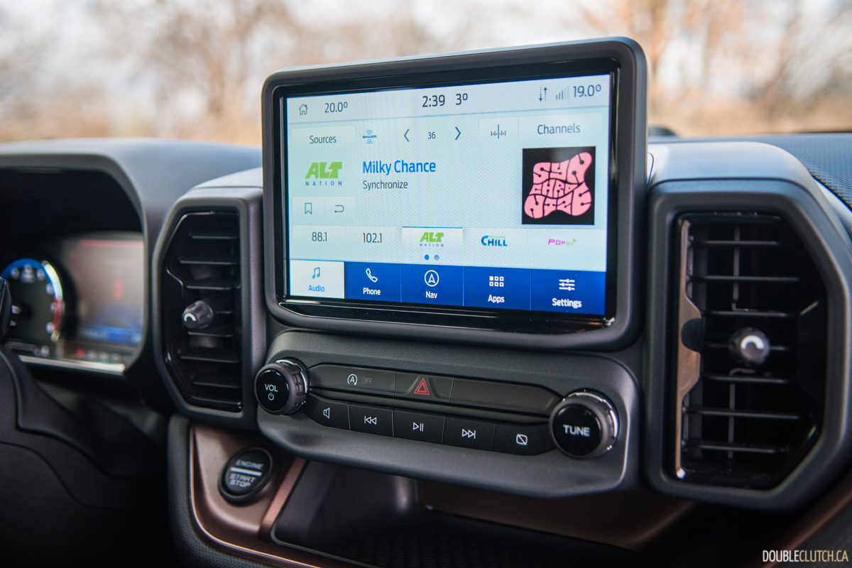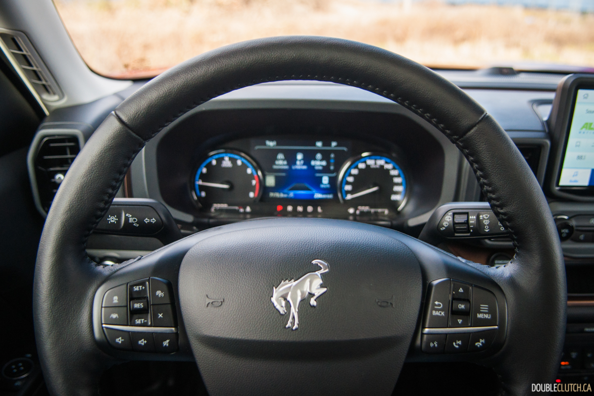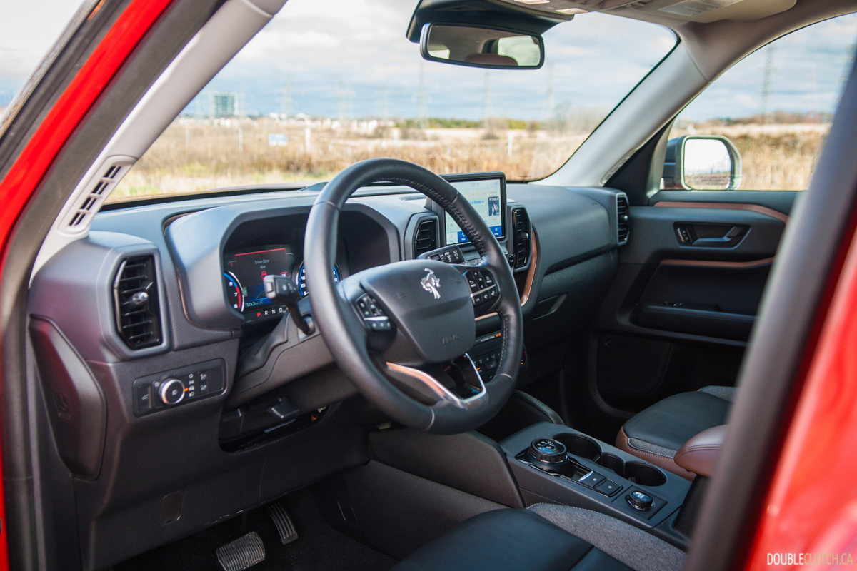 Beneath all the Bronco-ness, this thing is pretty much an Escape, sharing its underpinnings with Ford’s second best-seller. That means two powertrain options: the Base, Big Bend, and Outer Banks trims come with a 1.5-litre turbocharged three-cylinder engine, rated at 181 horsepower and 190 pound-feet of torque. If that’s not enough, the top-spec Badlands is powered by a more potent 2.0L turbo-four, putting out 245 hp and 270 lb-ft of torque. Regardless of the engine you choose, all-wheel-drive and an eight-speed automatic transmission are standard.