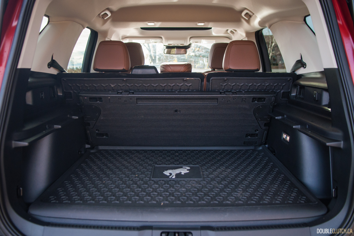 Cargo space punches in at 920 litres with the seats up and 1,846 with them stowed, but the Bronco Sport packs many tricks up its sleeve: the glass can flip out independent of the hatch, the floor and seat backs are all rubber, and there’s a nifty cargo floor (a $225 option) that also serves as a second-level for the cargo floor, and slides out and converts into a picnic table, among many others. The Bronco is chock-a-block full of practical touches.