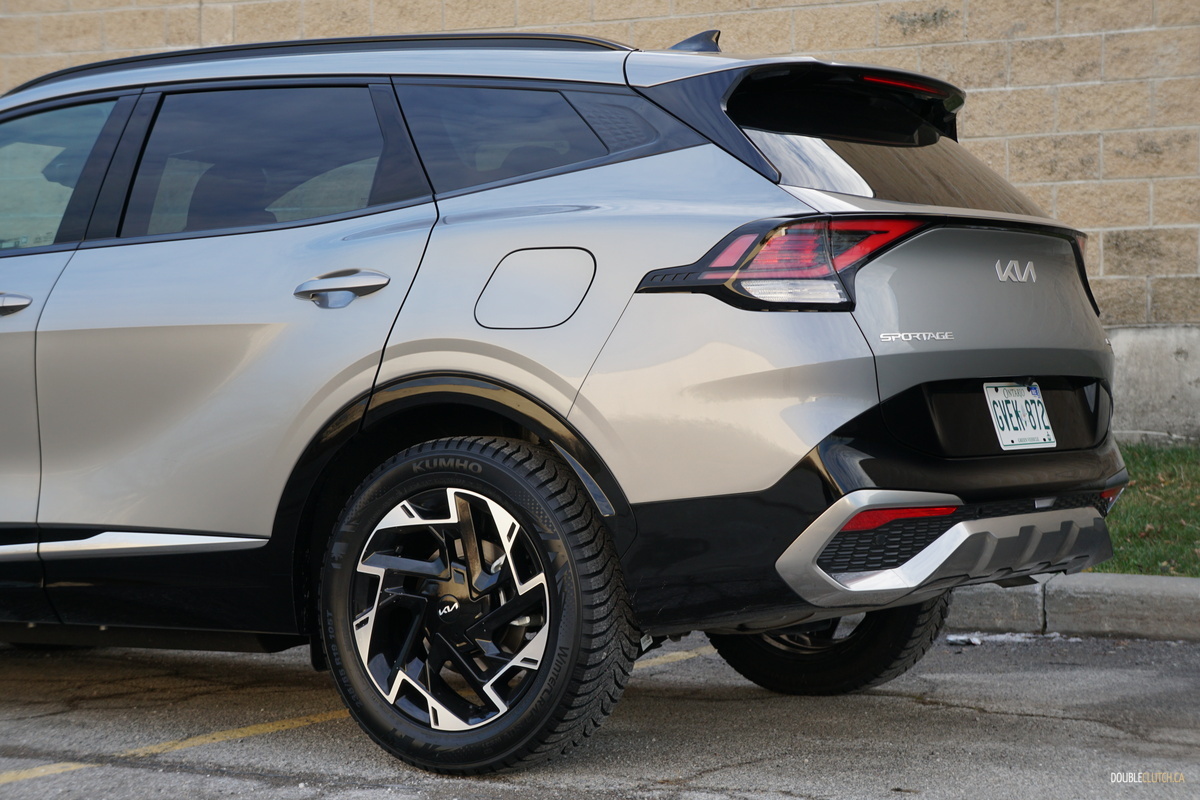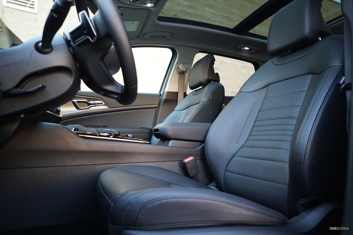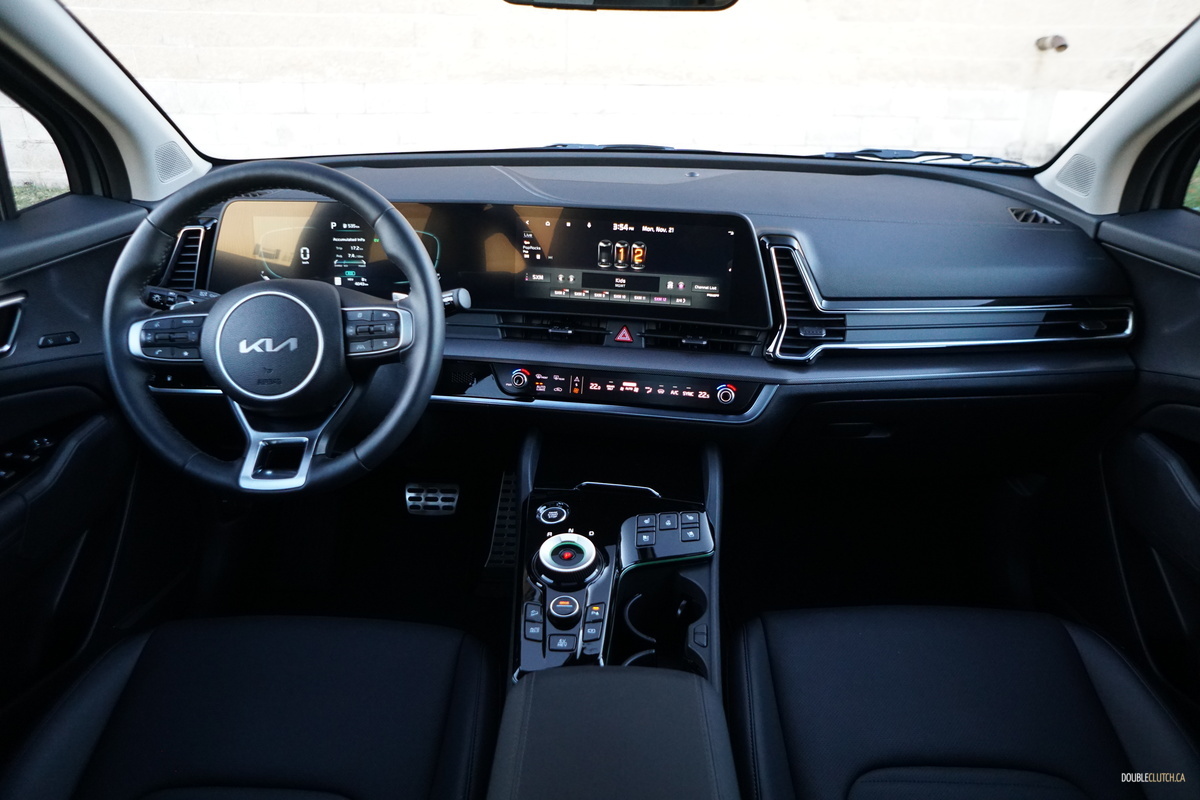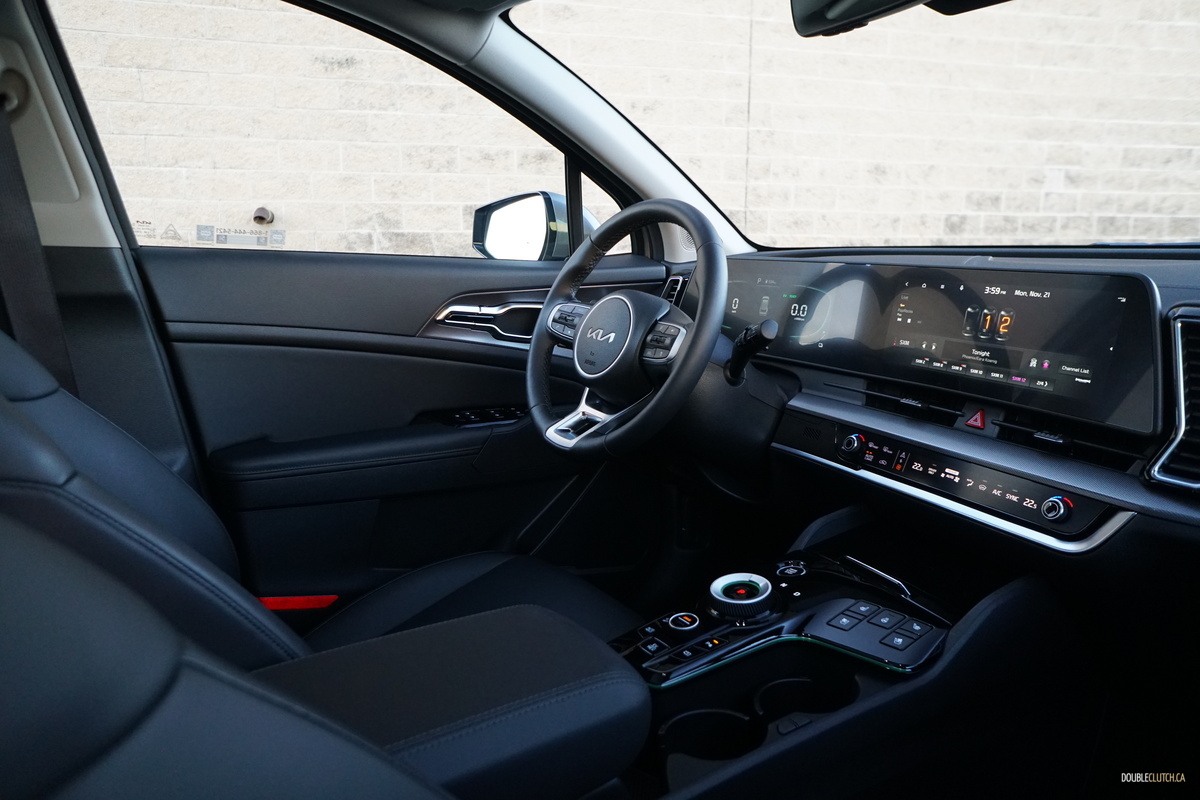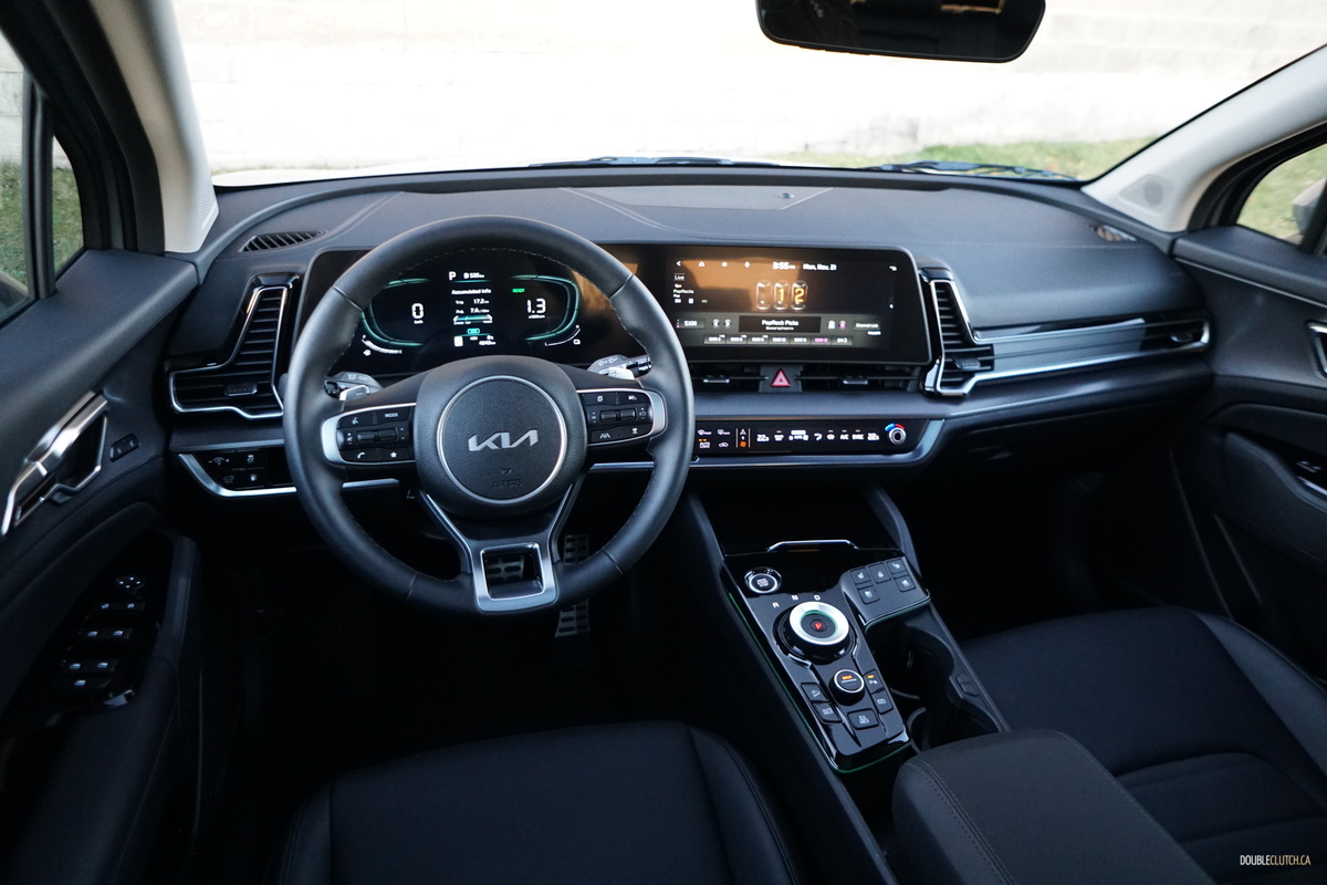 Another point of distinction is the Sportage’s optional plug-in hybrid powertrain, which our most recent tester was equipped with. We’ve already tested the base 1.6L gas engine and the same engine with hybrid assistance, but this week’s tester is the range topping PHEV model, with a full electric range of about 55 kilometres. The 13.8kWh battery pack is able to take a full charge in a couple hours, so it’s easy to keep topped up if you have a charger at home or work. Our battery was depleted for a little more than half of our testing, and we still observed 5.4L/100km. Not only is it the most efficient Sportage, it’s the quickest one too, as it mates a turbocharged 1.6 litre gas engine with a 90 horsepower electric motor to produce a combined 261 horsepower, resulting in very healthy acceleration.