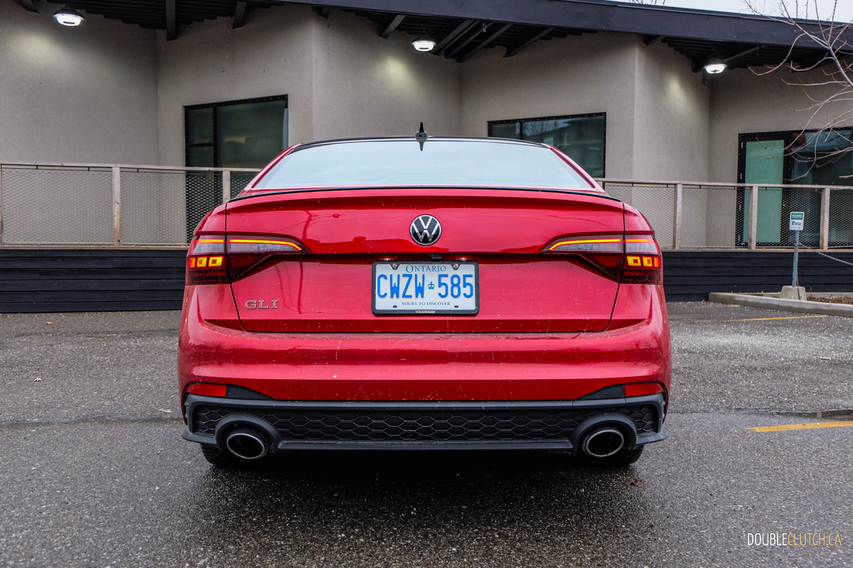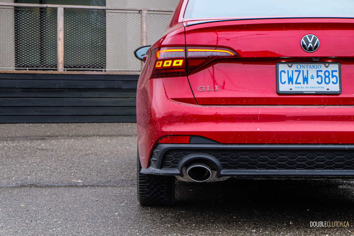 Where Volkswagen has decided to play it safe is with the exterior design. There are a few visual highlights to differentiate the GLI from a regular Jetta. The biggest changes are the two red vents found below the front headlights and the large twin exhaust outlets out back, along with a subtle trunk lip spoiler and of course the aforementioned wheels. Lighting is handled by LEDs all around. Personally, I would have loved it if Volkswagen took a chance by coming out with something more bold and daring, as we’ve seen on the newest GTI and Golf R.