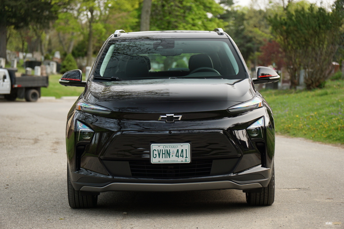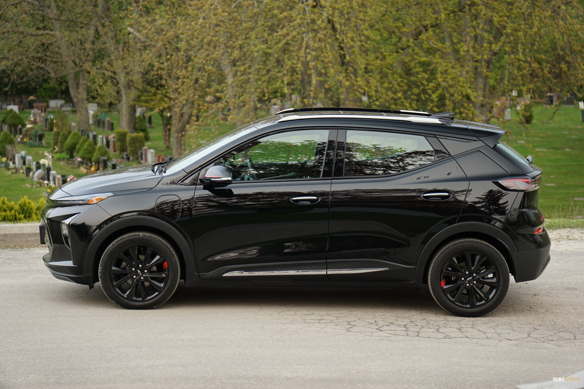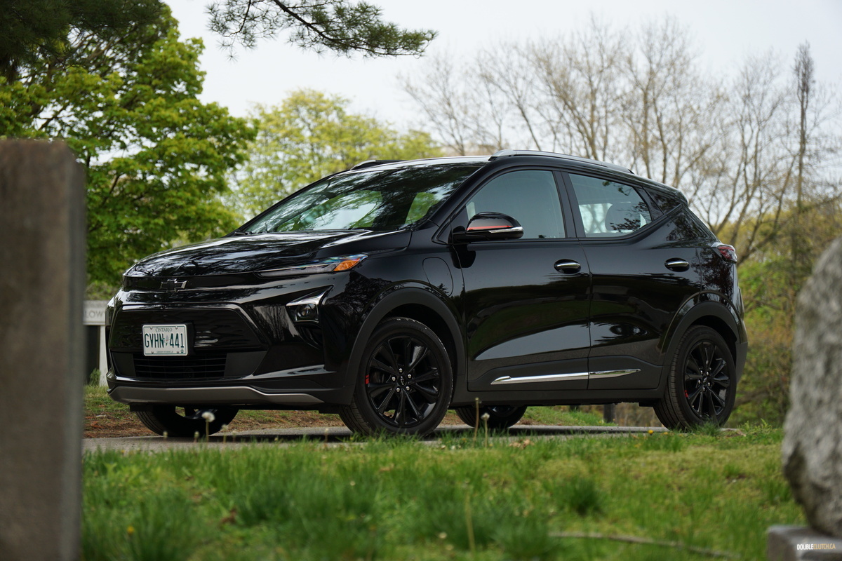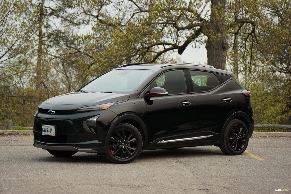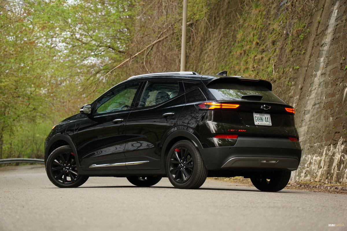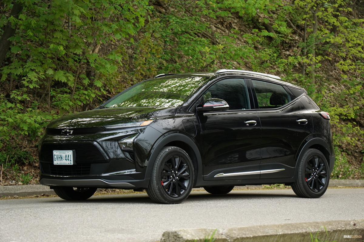 Our Bolt test vehicle came draped in appropriate garb for its own funeral, wearing Mosaic Black paint, along with black wheels, as part of the $570 Redline edition package, which includes said wheels and red highlights, serving to breathe a last gasp of life into the doomed Bolt. Its 2022 facelift still looks fresh, giving it tight, contemporary styling that admittedly is not quite as interesting as something like an Ioniq 5 but neatly manages to avoid being a Tesla clone. It’s still a sharp looking little orb, but we’d prefer it with less somber coloring.