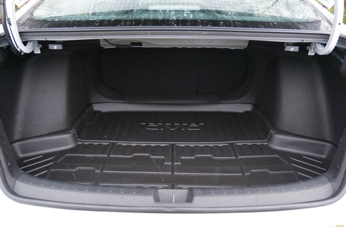 The rest of the Civic’s cabin is precisely what you’d expect. Visibility all around is great, infotainment is intuitive, and there’s generous headroom and legroom, especially out back. Not to mention, the 419-litre trunk is massive, beating out key players like the Corolla, Sentra, and Jetta, although if you want the biggest trunk for your junk, the Forte remains the segment leader.