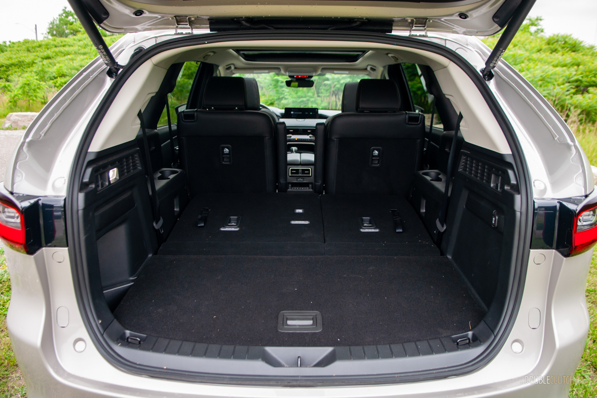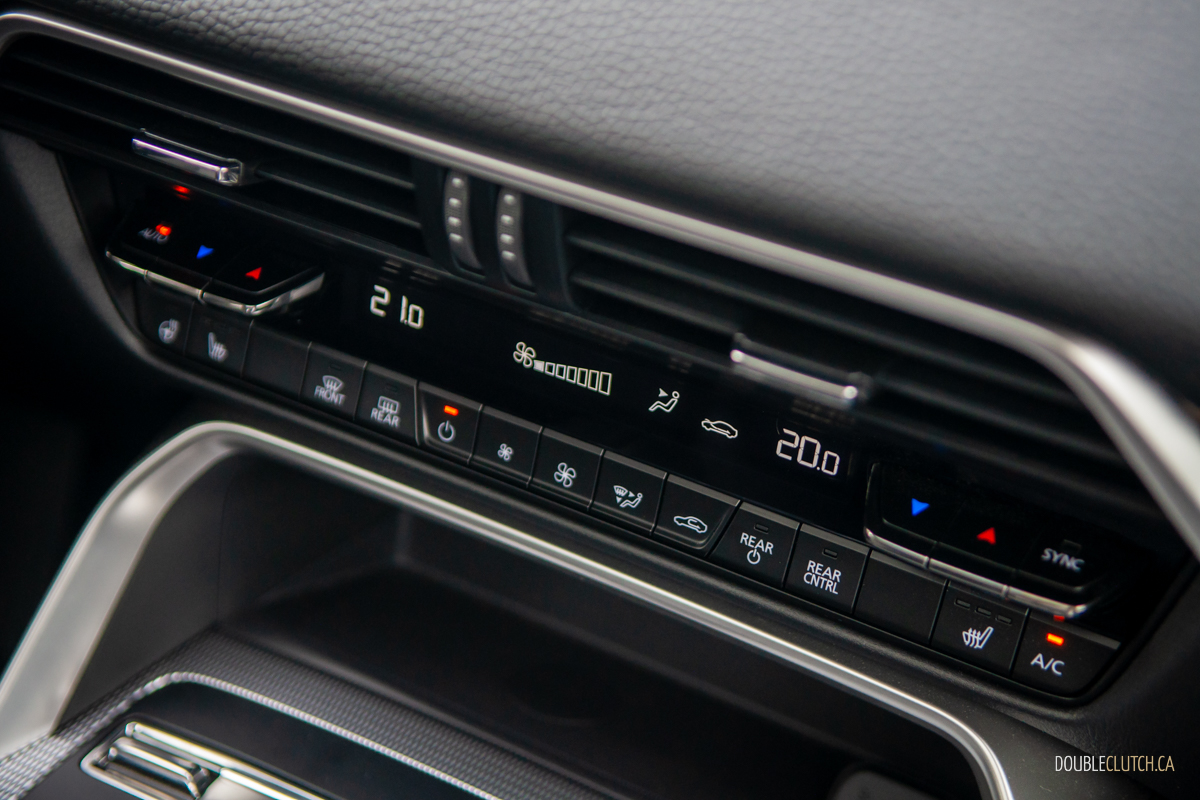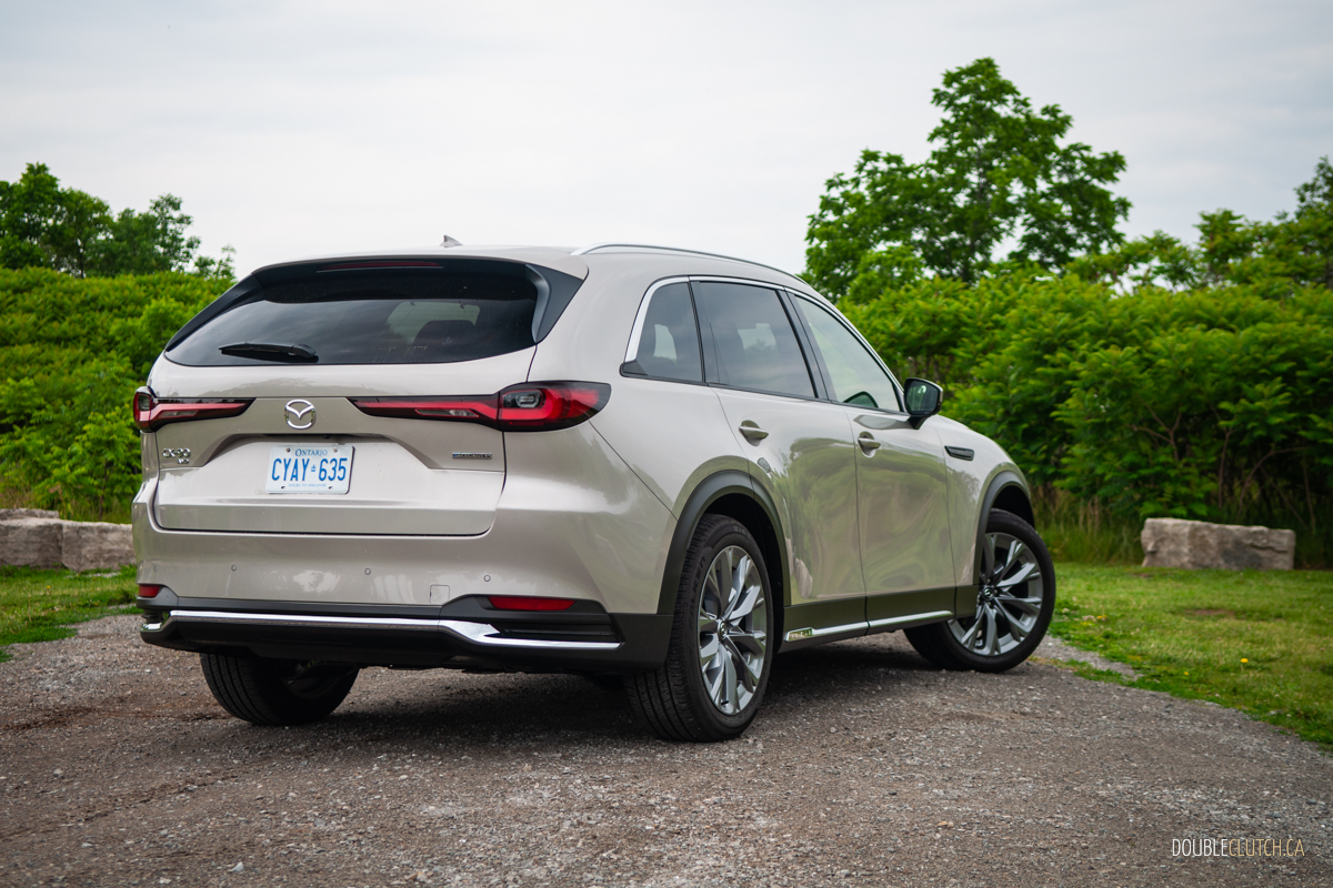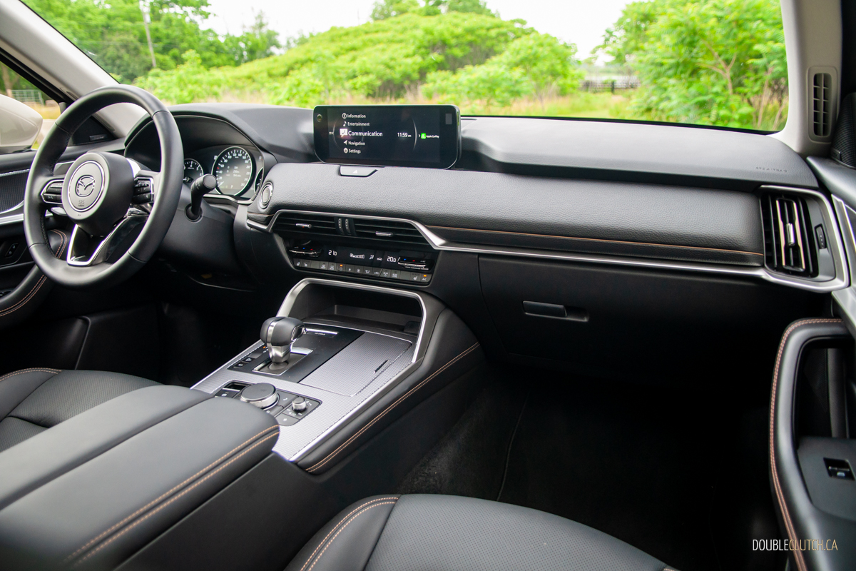 Stepping up to the CX-90’s GT-P and Signature trims ups output to 319 hp and 369 lb-ft of torque on 87-octane gas; feed it 93 and you get another bump to 340 ponies, but whether that minuscule bump worth the price difference between hogwash and high-test is up to you. Officially, the base sixer sips 9.9 L/100 km city, 8.4 highway, and 9.3 combined; we averaged 9.2 L/100 km over a fairly even city/highway split. Commendably miserly, given the CX-90’s sheer size.
