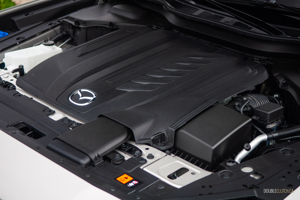This mid-spec CX-90 GT tester comes with the former powertrain in its least-powerful tune, but it certainly didn’t feel like the “base” engine. Rated at “only” 280 horsepower and 332 pound-feet of torque, it never once left us asking for more power, and the silky BMW-like soundtrack was delicious. All CX-90s get an eight-speed automatic transmission, and send power to all four wheels via a rear-biased all-wheel-drive system. Towing capacity on the GT is rated at 5,000 pounds.