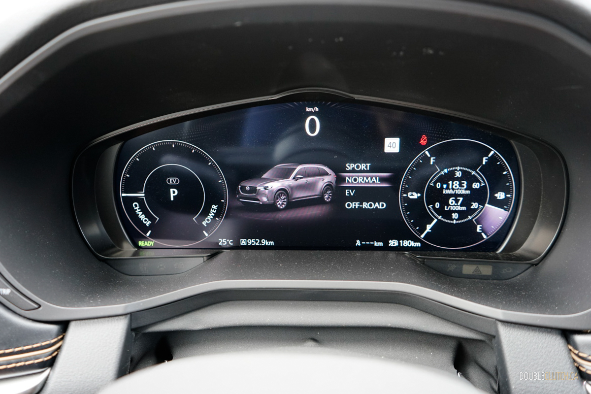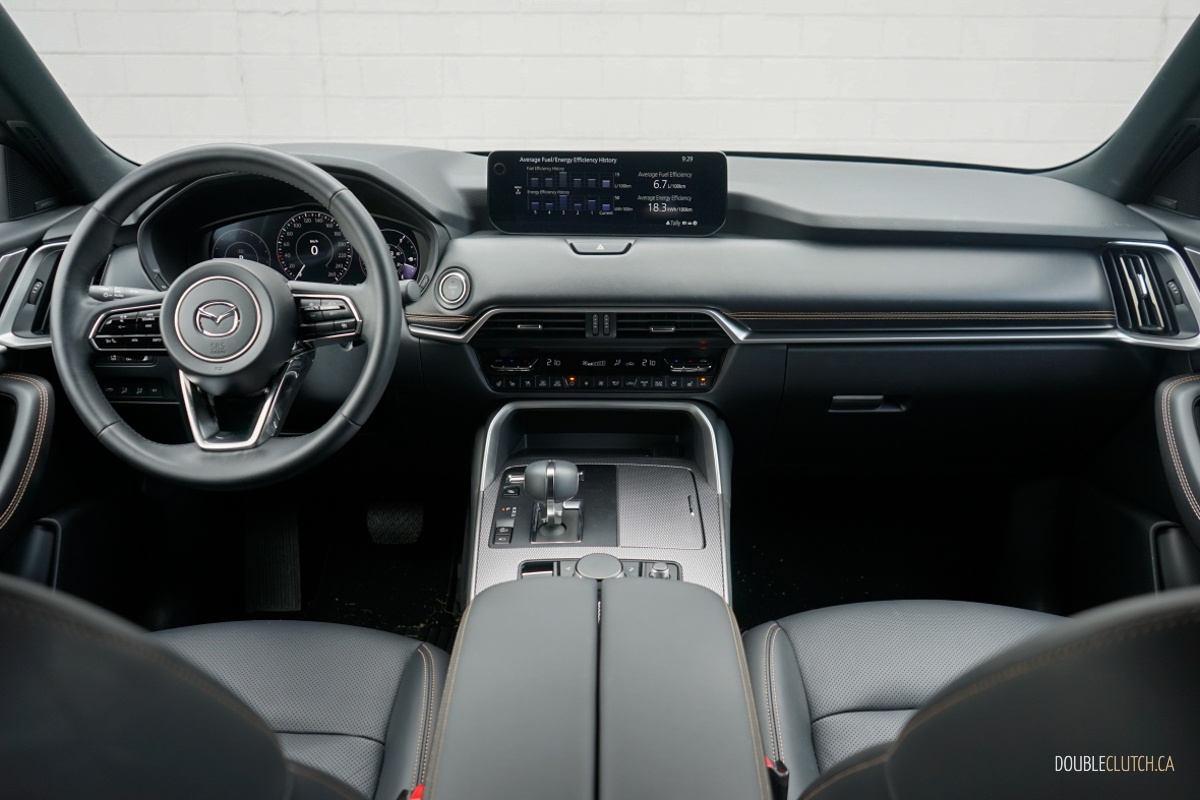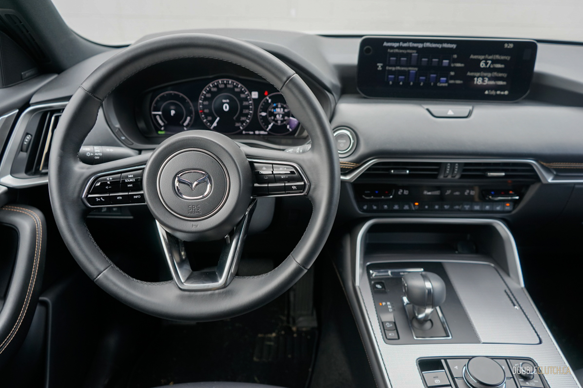Our week with the CX90 PHEV consisted of a good mix of bumper-to-bumper traffic as well as several long road trips. We observed 6.7 L/100 km combined in the real world, and found that the shorter the commute, the more fuel economy improves — as long as you have the means to charge overnight from home. To get the maximum power output, Mazda recommends premium for its 70-litre tank, but the sacrifice going down to regular is only a four-horsepower drop, so you can decide what’s best for you.