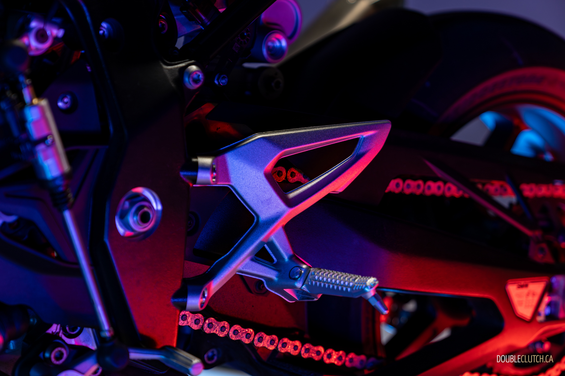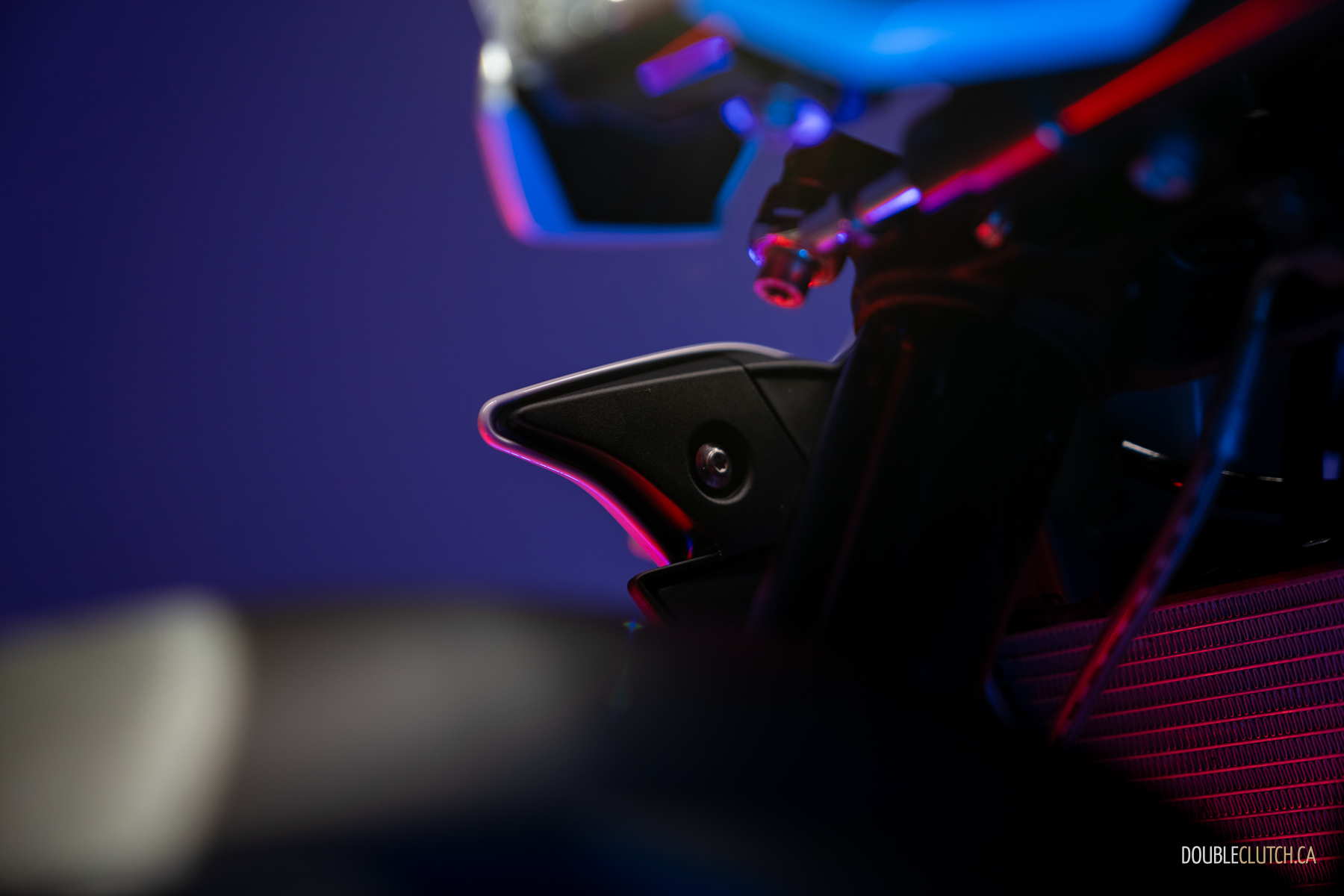 Lastly, despite the winglets affixed to the bike, the front end feels light and borderline unpredictable at high speeds after a shot of throttle. My first encounter with this was unsettling, but once I realized the inputs trigger it and the steering dampener handles it, I regained confidence. Again, bar weights could help this issue, as just a bit of extra weight on the front end can make a big difference.