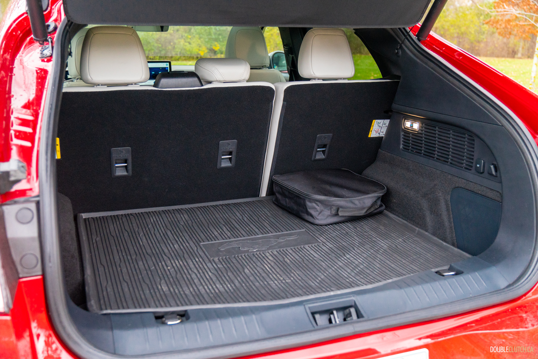 Outside, the Mach-E today is identical to when it first debuted. Take away the Mustang name and you still have a rather attractive and stylish SUV. Jump behind the wheel and you’re greeted with a large, vertical infotainment touchscreen and a rather small and unimpressive gauge cluster behind the wheel that can be difficult to read, based on your height and how you adjust the steering wheel. The interior materials are good but nothing luxurious. It might’ve looked fresh in 2021, but compared to newer EVs like the EV6 and Hyundai Ioniq 5, it’s a bit dated. The Mach-E will easily fit 840 litres of cargo with the seats up, and that figure more than doubles to 1,690 when stowed. The front trunk is good for another 133 litres of cargo space — more than the Tesla Model Y’s 117-litre frunk.