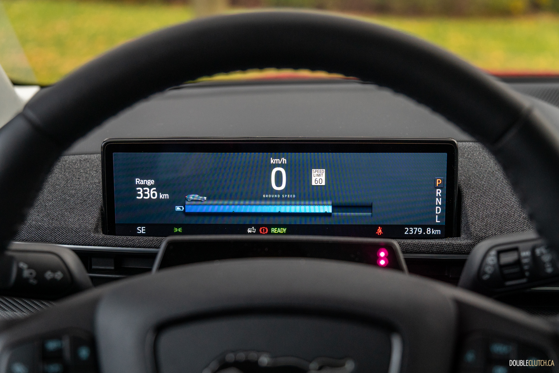 In the cooler, early winter air, we struggled to get close to the estimated numbers. Despite Ford’s 467-kilometre estimate, we couldn’t do better than roughly 400 km on a full charge, with ambient temperatures hovering around -2 degrees Celsius for most of our week. To be fair, colder weather impacts range on most EVs, and 400 km is still more than enough for most commutes, but seeing the Mach-E’s on-board range estimate drop faster than the distance you actually travel no doubt induces a bit of range anxiety.