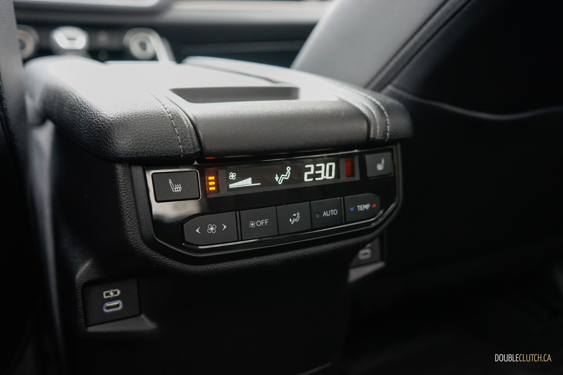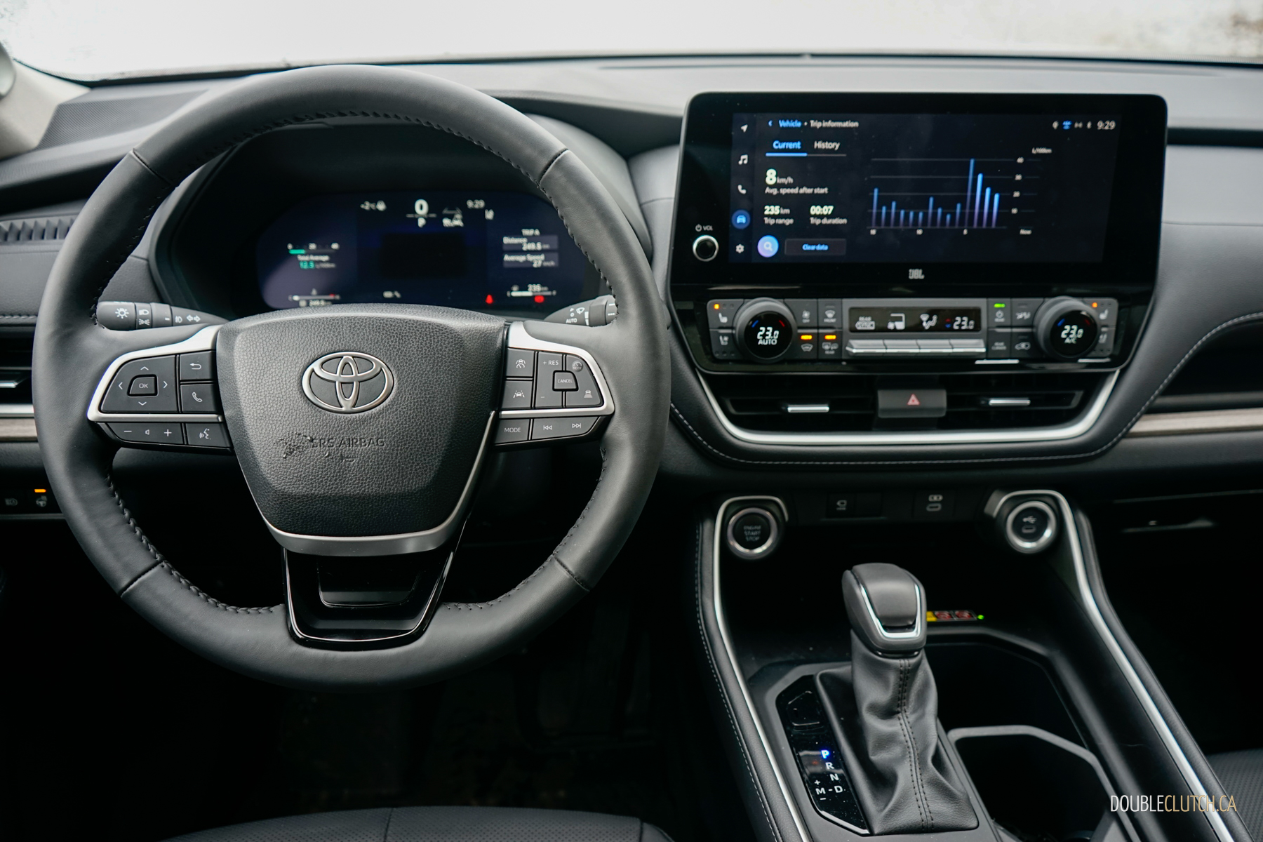 There is a lot to like inside the Grand Highlander. It feels upscale with inviting premium materials throughout, and the dashboard layout is quite intuitive. I like the physical switchgear for climate controls — including a click-on/click-off button for the heated steering wheel, meaning it stays on every time you restart it — and there is loads of storage space throughout the cabin. There is plenty of dedicated cell phone storage in all three rows, which is way underrated as a design function in modern cars, plus a host of USB ports and one wireless charging pad to keep these devices charged up throughout the journey.