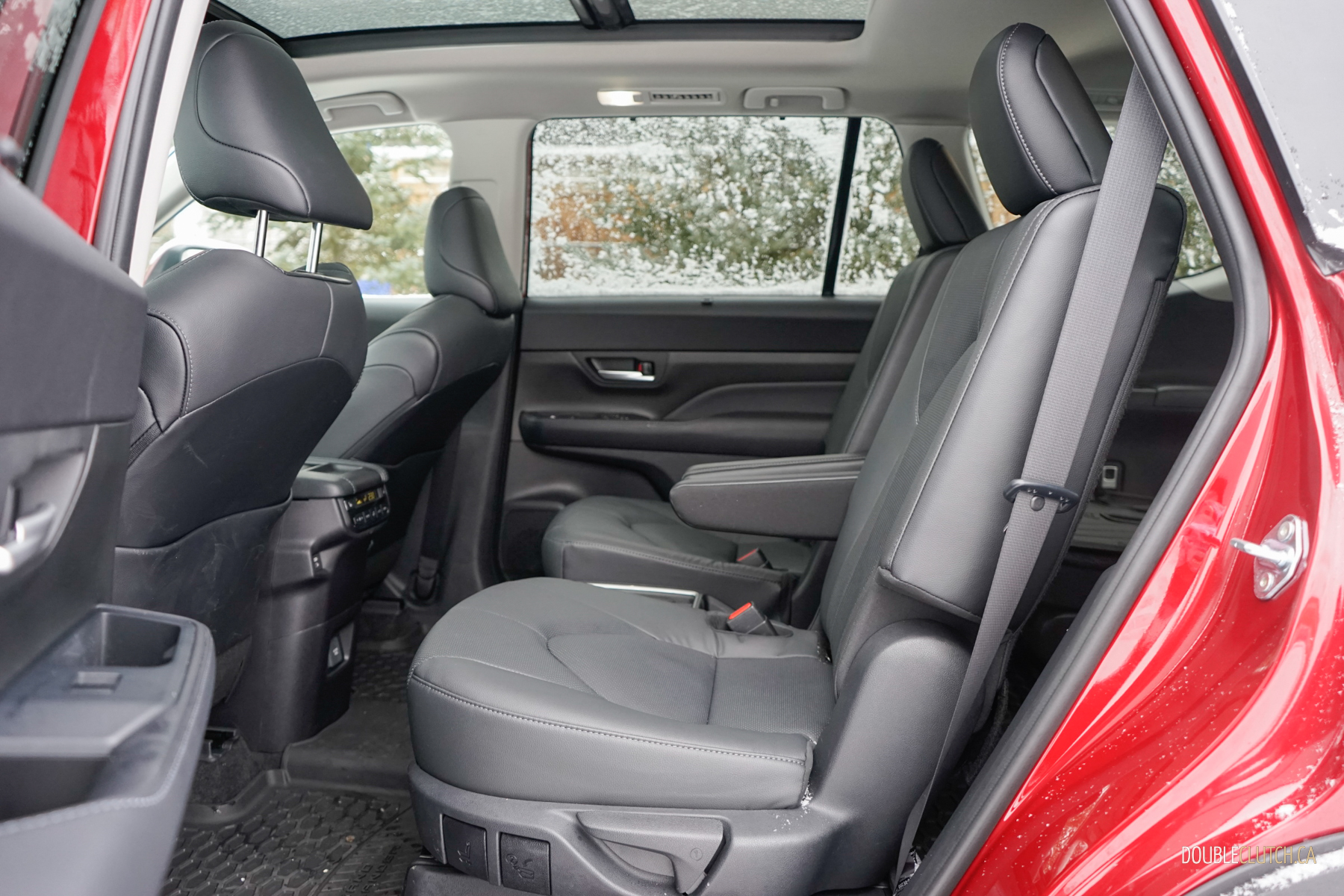 There are three powertrains lining the Grand Highlander. The gas-only 2.4-litre turbocharged four-cylinder and 2.5L hybrid powertrains are shared with the standard Highlander, while the range-topping Hybrid Max powertrain — combining the 2.4L turbo-four with a more powerful hybrid system — is exclusive to the Grand Highlander. Our tester is powered by the turbo-four, producing 265 horsepower and enabling the Grand Highlander to run from zero to 100 km/h in 7.7 seconds. Though these figures do not particularly stand out, the power is quite plentiful to get the Grand Highlander going effortlessly. If you stay on the throttle, it does run out of breath like most other three-row powered by a turbo-four, but we never felt it lacking or underpowered.