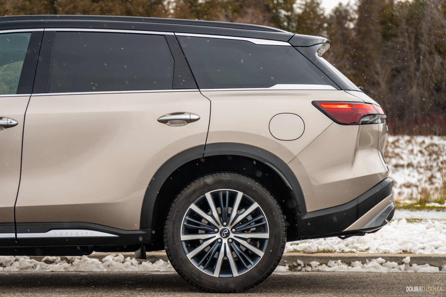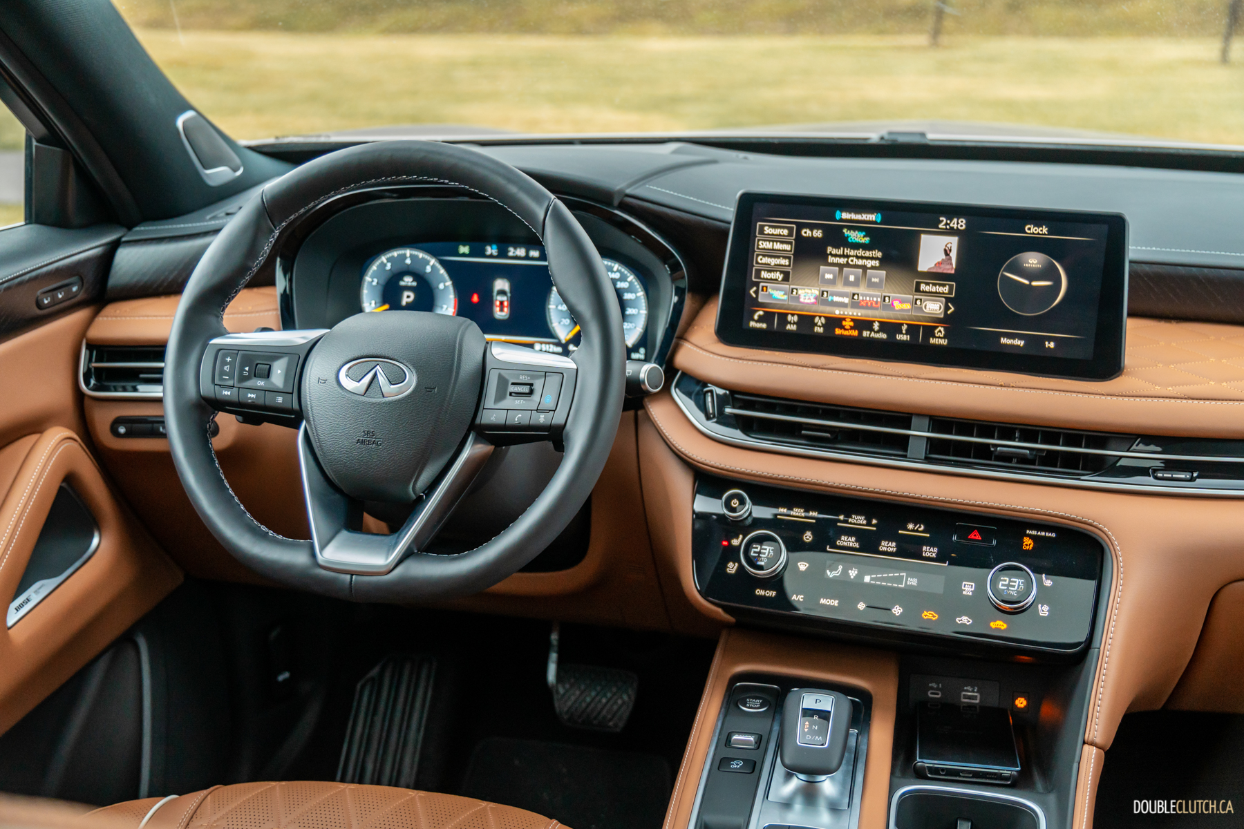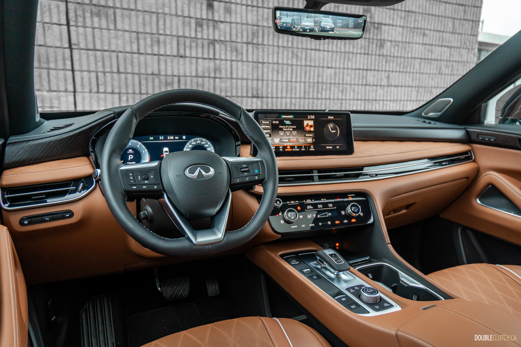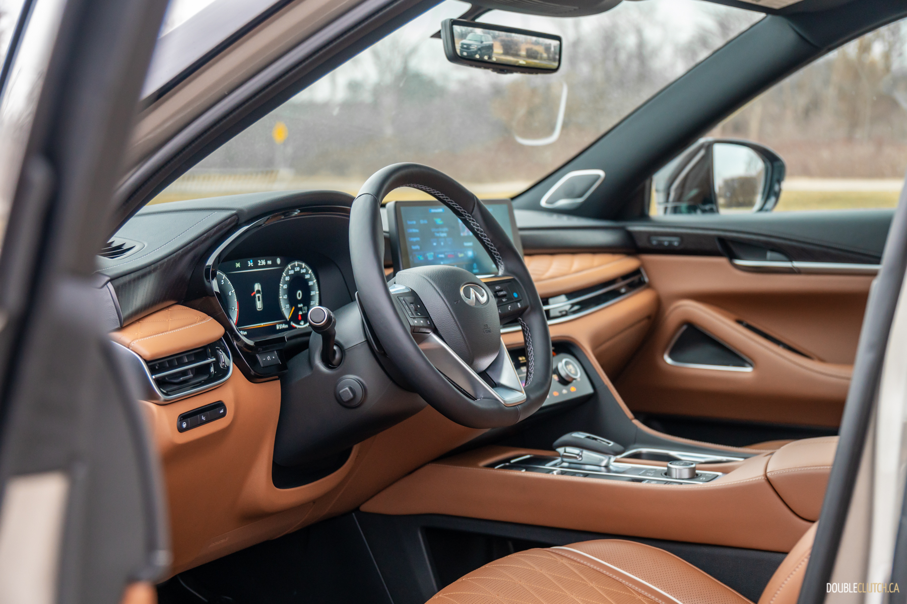 The difference between this class chameleon and the veterans of the Starbucks line is in the fine details, where if you really start looking, you see some rough edges. The leather on one side of the steering wasn’t totally adhered properly, rain is curiously loud splashing against the bottom of the car, and the aging infotainment has a few minor annoyances that its competitors have ironed out. All are nitpicks, but they add up, and this is where things start to come apart for the QX60.