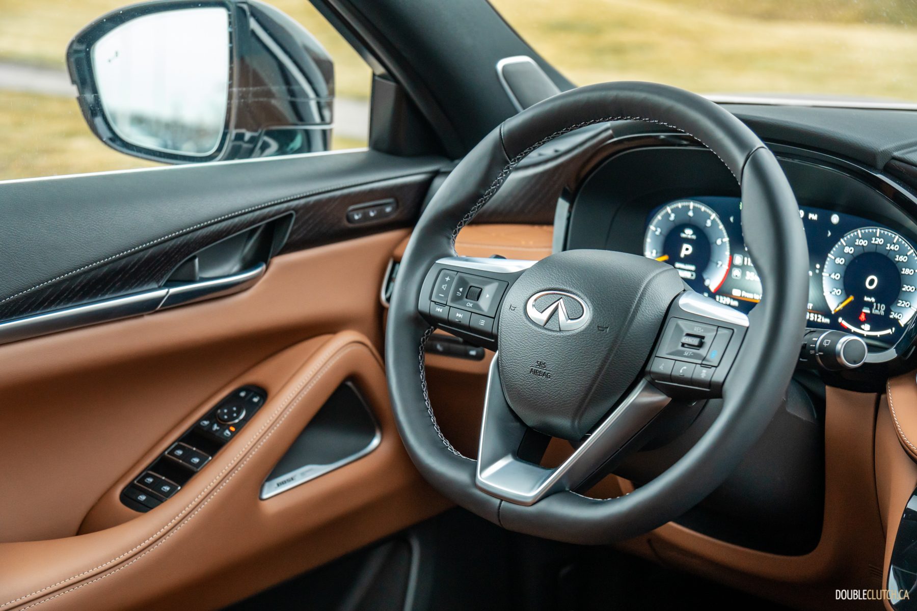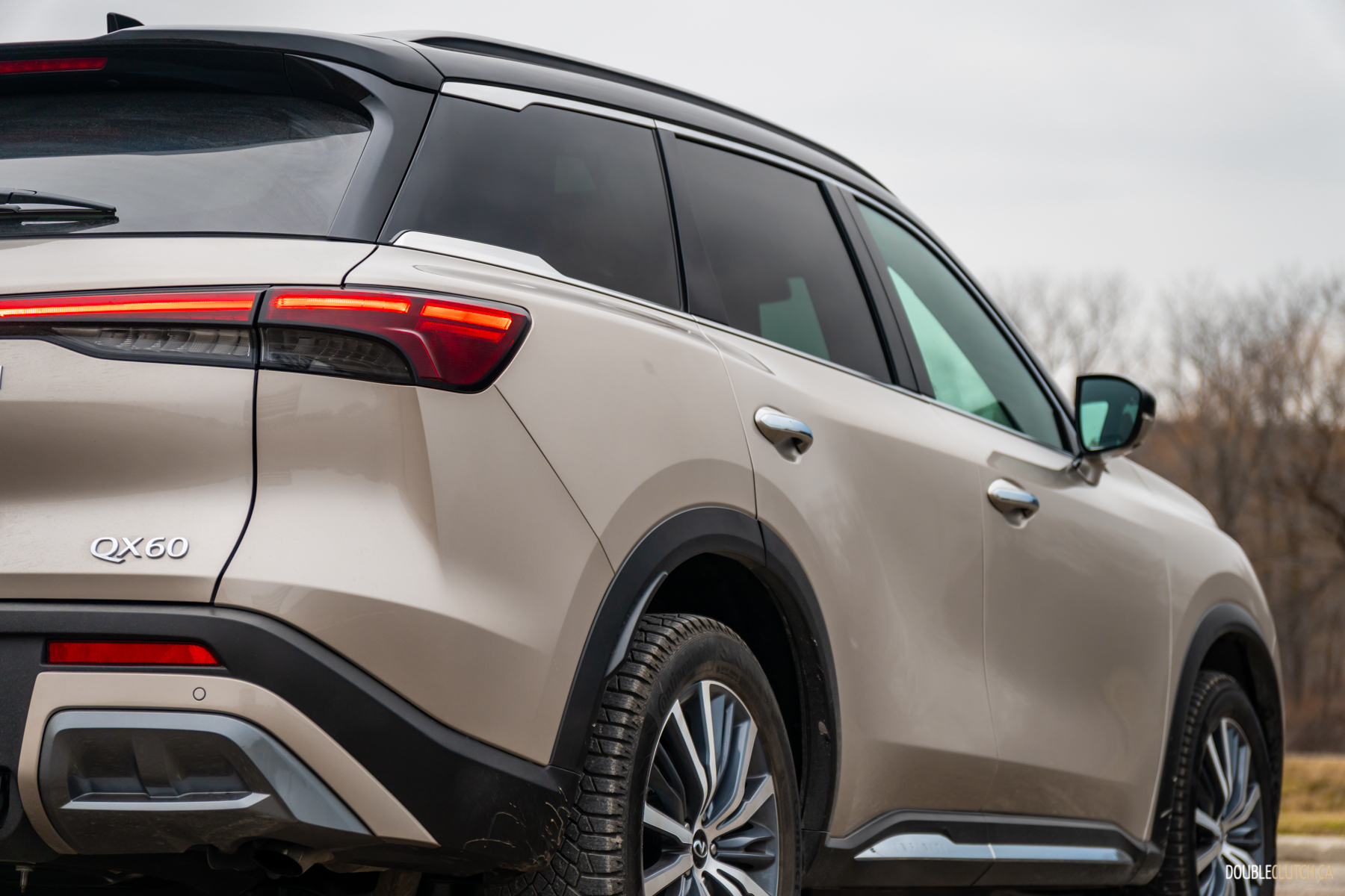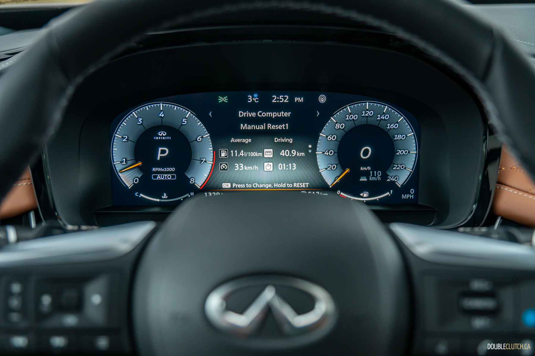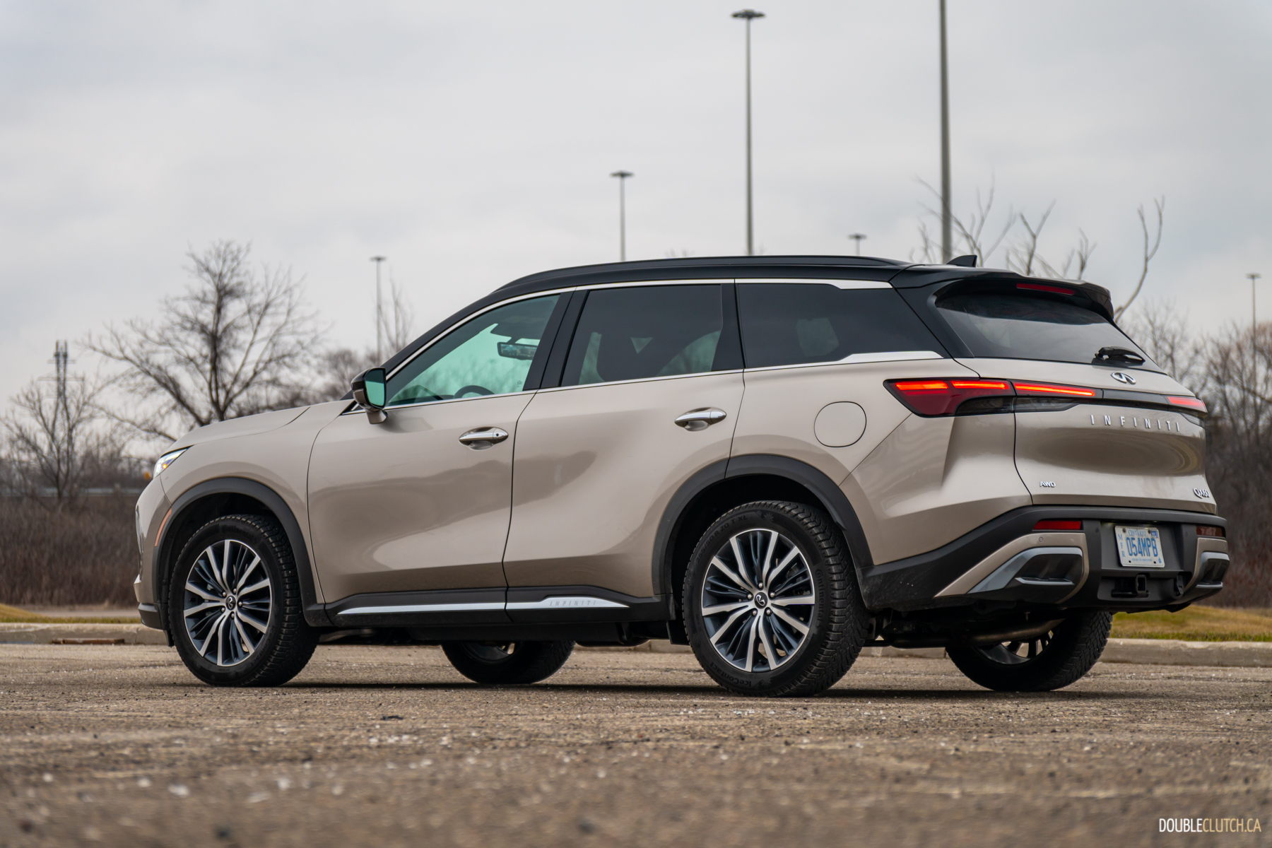 The difference between this class chameleon and the veterans of the Starbucks line is in the fine details, where if you really start looking, you see some rough edges. The leather on one side of the steering wasn’t totally adhered properly, rain is curiously loud splashing against the bottom of the car, and the aging infotainment has a few minor annoyances that its competitors have ironed out. All are nitpicks, but they add up, and this is where things start to come apart for the QX60.