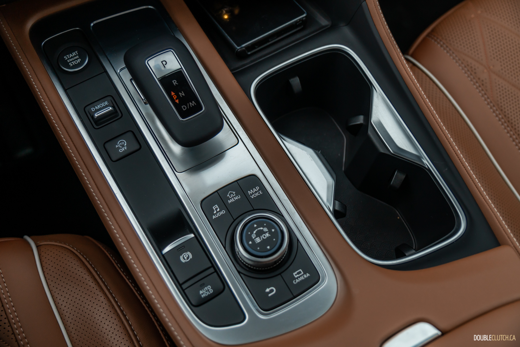 There’s a rotary dial nestled in the real metal centre console to aid usability, very much in the style of a certain Bavarian automaker. Audio is handled by a 17-speaker Bose Professional Series sound system, which is a vast improvement over the generic Bose-rebrand jobbies in a lot of the trucks in the Tim’s line, let alone the rest of Nissan’s lineup. Everything works well, looks good, is easy to use, and generally feels of quality.