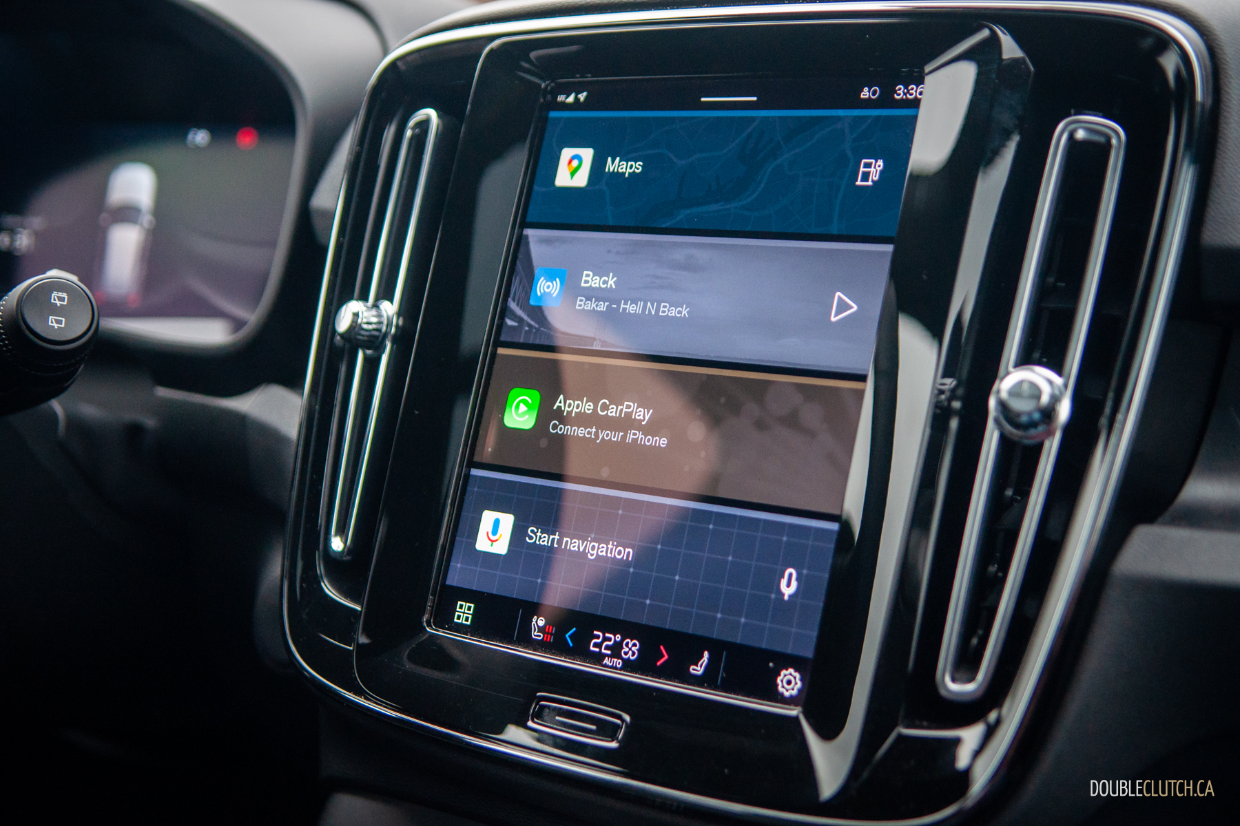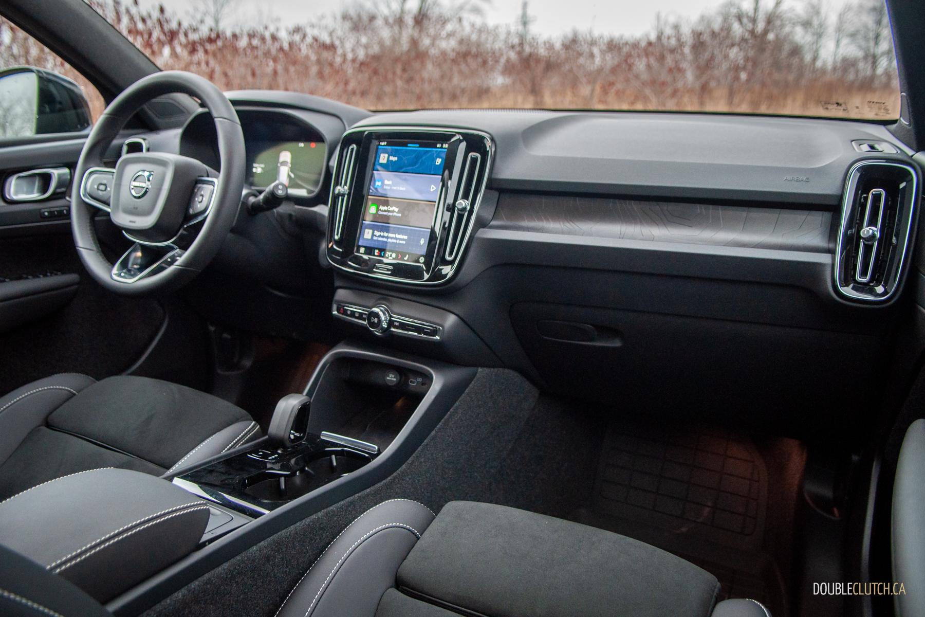 On tech, the XC40 was the first to debut Volvo’s Google-based infotainment system. How its aged is hit-and-miss; we’ve experienced hiccups and glitches in other Volvos we’ve reviewed, but we’ll grant that in our time with the XC40 Recharge, it didn’t skip a beat. There’s a bit of a learning curve to the interface, but if you’ve ever used a tablet at any point in your life, you’ll pick it up pretty quick. The only physical switchgear is a row of buttons and one (admittedly large, and finished in some very nice knurled metallic trim) volume knob below the main screen, but at least the climate controls stay on screen all the time. Oh, and Apple CarPlay is finally standard, but you have to plug in your phone.