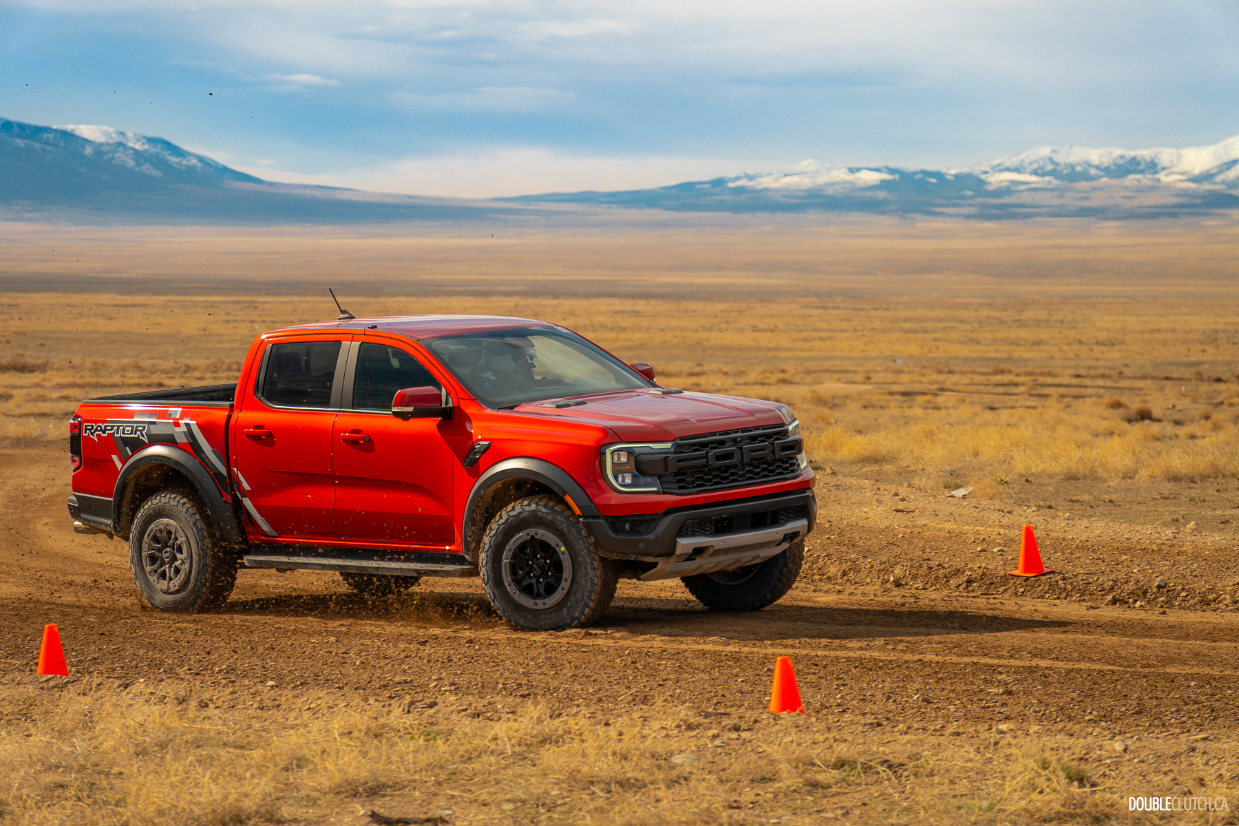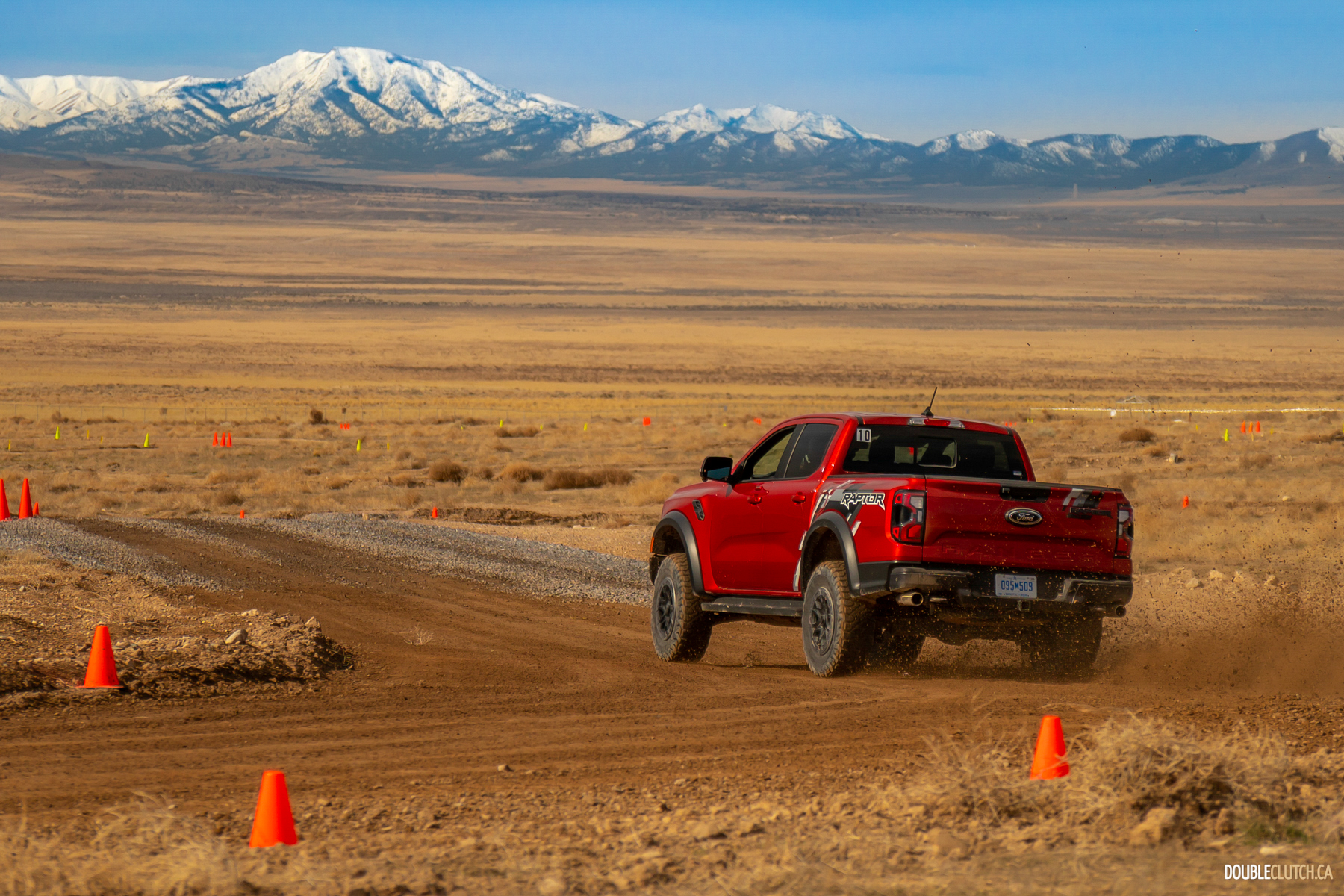 The Ranger Raptor steers shockingly well, too. The beautifully gauged steering rack precisely telegraphs what the front end is doing, and after only a few fast laps of getting to know the Raptor, I was able to fly through dirt corners and kiss cones like it was nothing. I was just starting to really get into the swing of it before moving onto the next flex of the Raptor’s capabilities.
