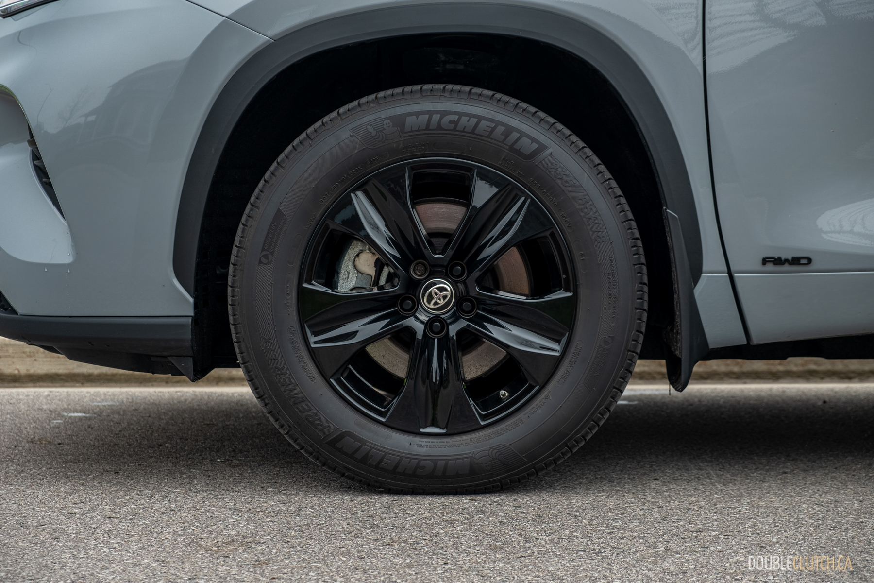 Much like this Highlander. Finished in a cement-like grey — Toyota literally calls this colour “Cement” — the Nightshade package adds gloss black 18-inch wheels, plus matching door handles, grille trim, a roof spoiler, and emblems to a relatively sedate-looking exterior. You can tell the Highlander is getting long in the tooth, especially compared to newer Toyota crossovers and SUVs adopting boxier and more aggressive styling, like the Grand Highlander and Land Cruiser. The rest of the Highlander is pretty standard fare, with the proportions you’d expect from a three-row crossover, but I’ll give it points for having some pretty prominent character lines. I especially liked the crease running down the lower portion of the body, then sweeping up over the wheels. The Sienna does this, too, to even greater effect.