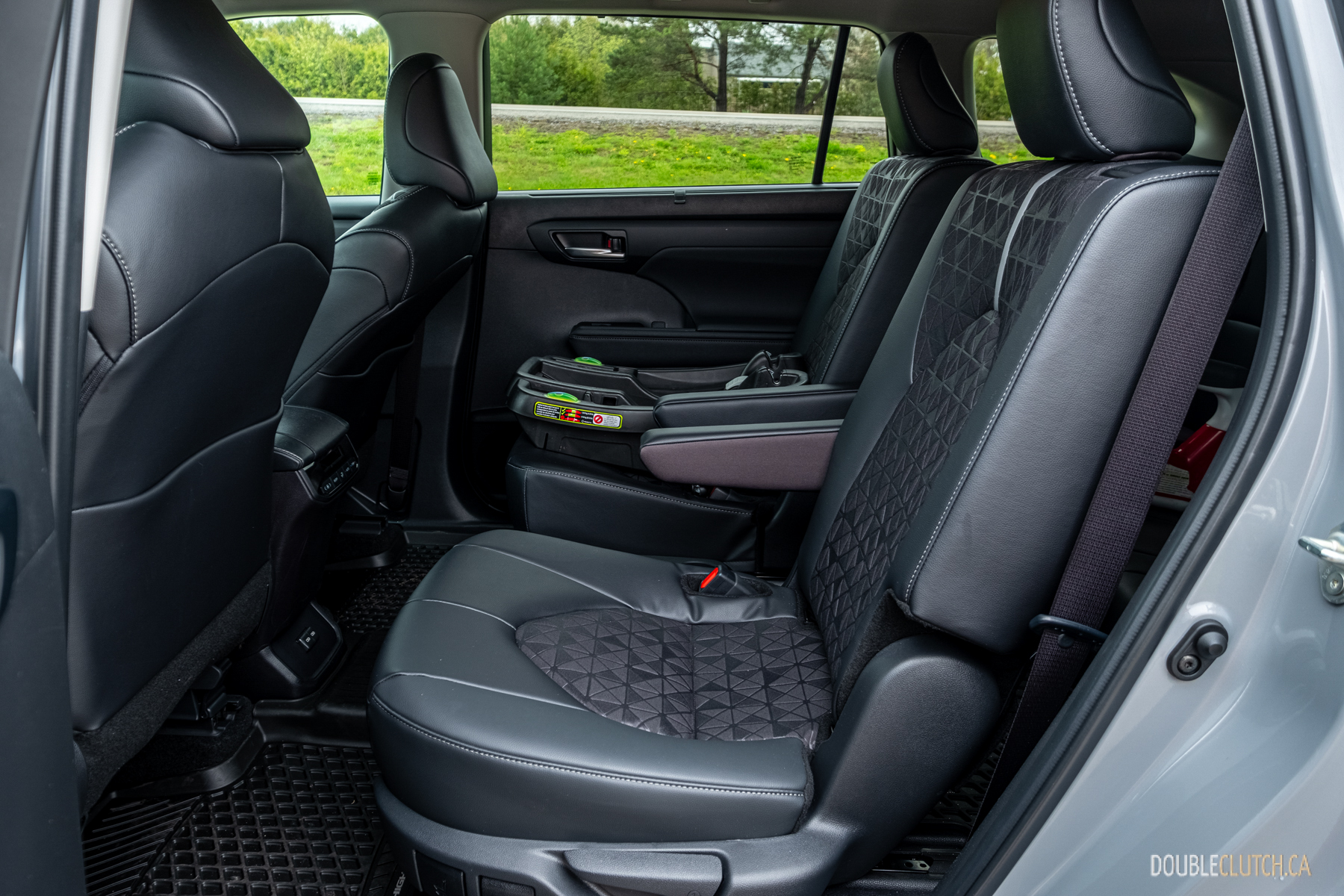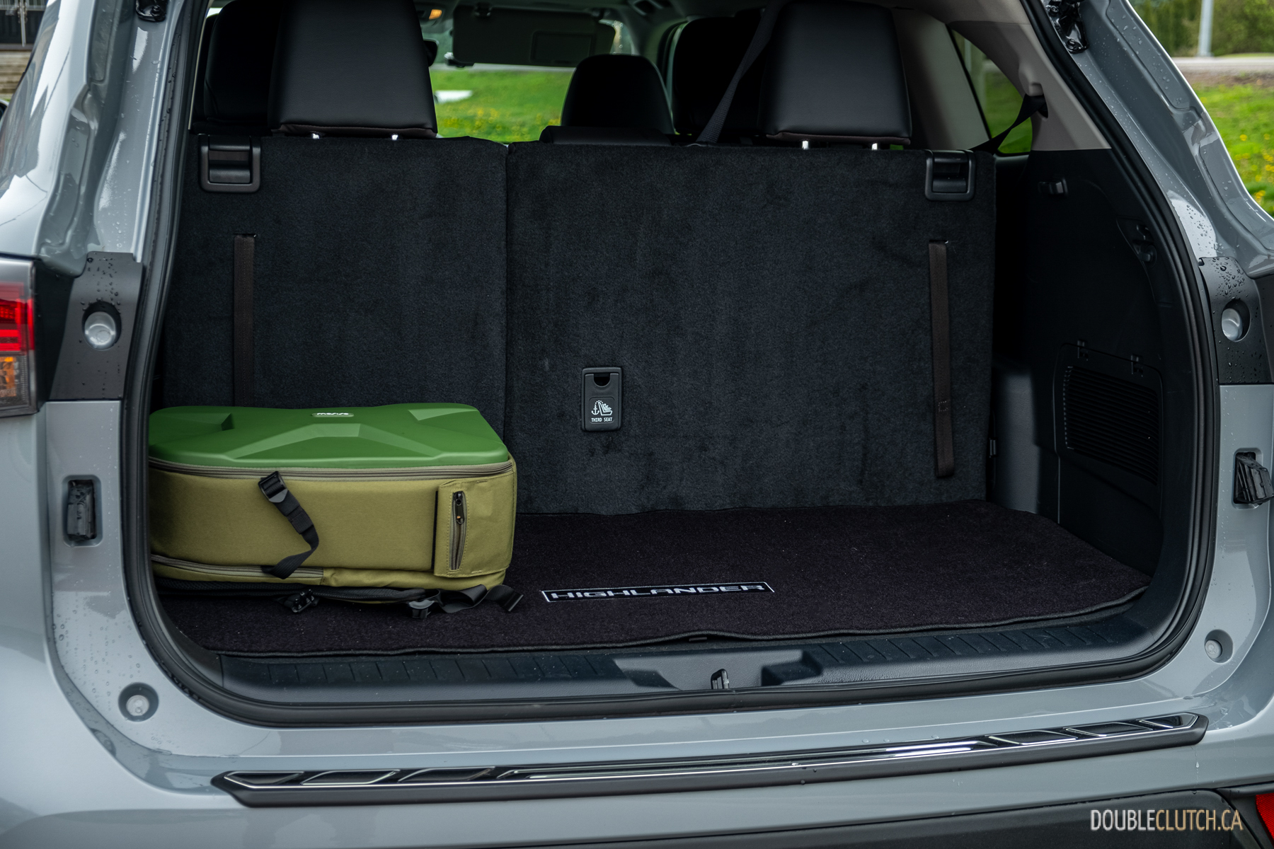 There’s adequate space in the first two rows, but it falls short once you get to the third row. They’re clearly designed for not-yet-fully-formed humans, but luckily, climbing back there isn’t an issue with the second-row captain’s chairs that easily fold out of the way. As with most three-row crossovers, a baby stroller only fits upright in the trunk area. It’s a bit of a nuisance in the Highlander because it bangs against the back glass going over large bumps, or topples over when you open the tailgate, but this issue isn’t exclusive to the Highlander. I kept the third row folded all the time so I could lay the stroller flat and have storage space to spare.