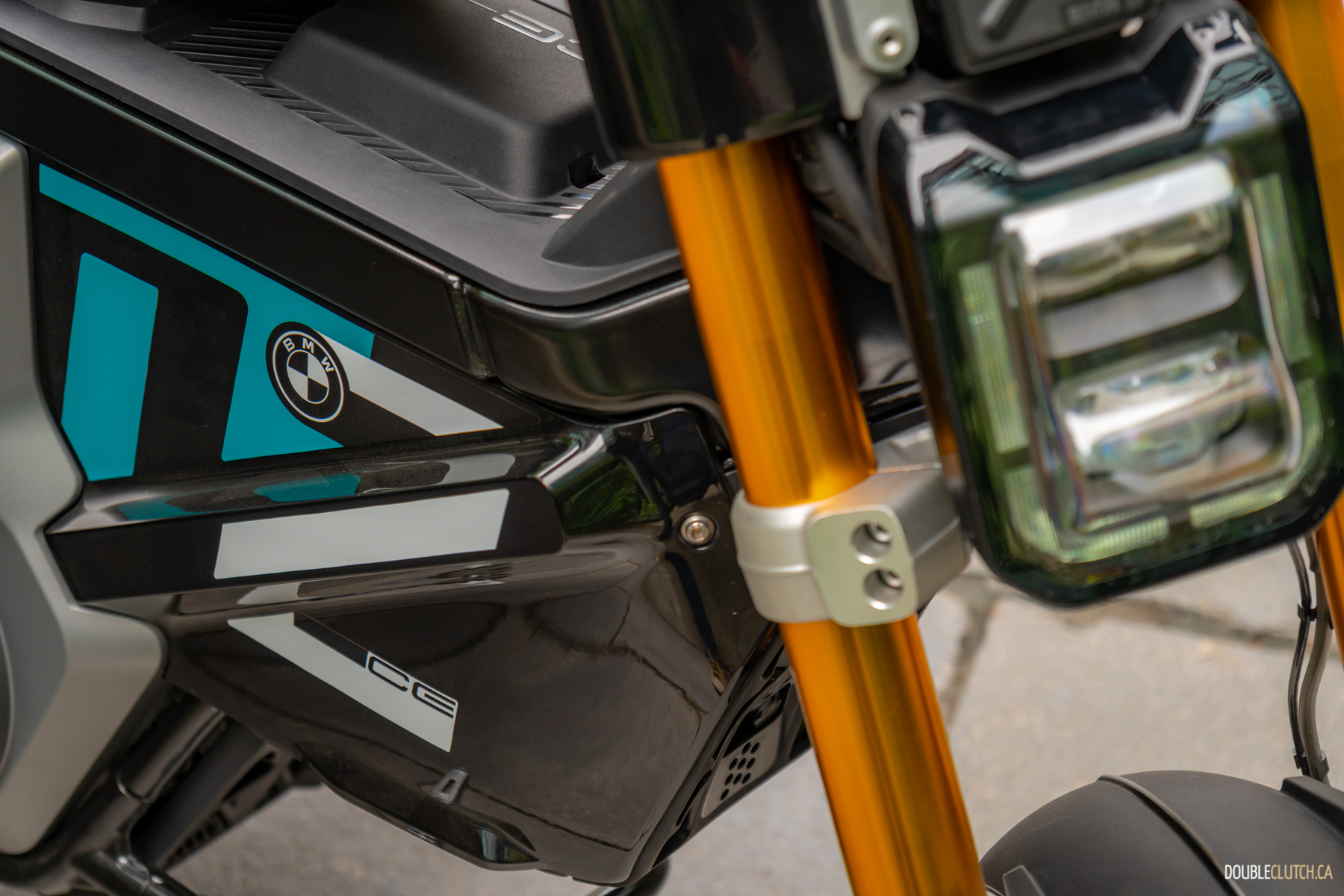 BMW indicates the CE-02 is capable of approximately 85 kilometers on a full charge, so within its urban warrior use-case, it’s pretty free from range anxiety. It’s not a road trip bike, but you’re not taking the CE-02 out of town to carve up some twisties, either. You can and should enjoy the 02 in town. It offers plenty of range to get to the office and back, run some errands on the way home — or ride through Twyn Rivers just for the hell of it. On a common level-one charger, it’ll go from a realistic 20 to 80 per cent charge in under two hours, with a full 0-100 charge taking a modest six hours.